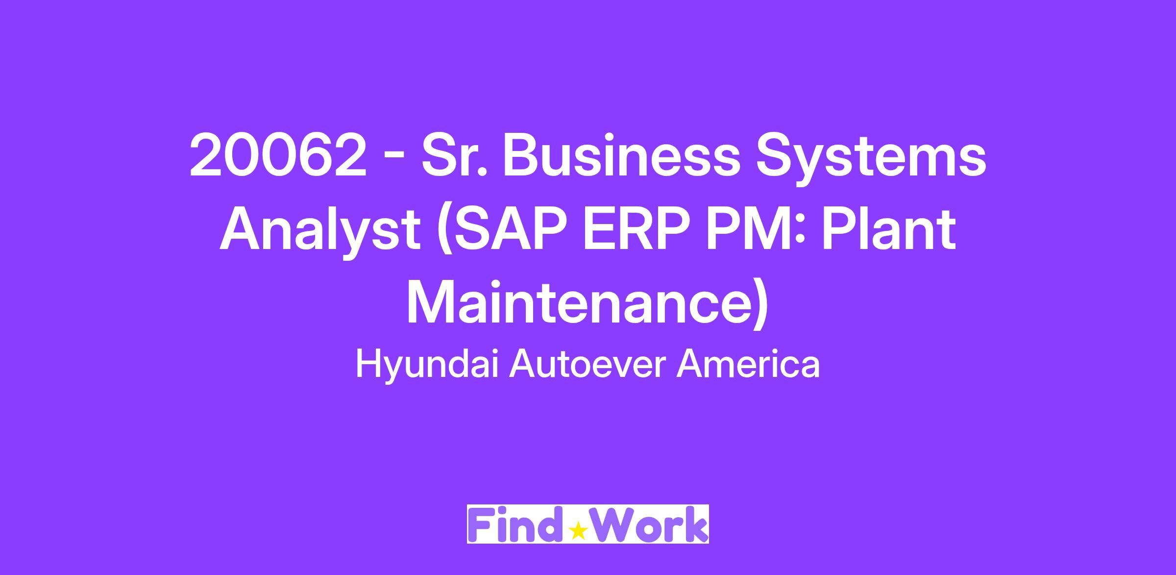 20062 - Sr. Business Systems Analyst (SAP ERP - Plant Maintenance)