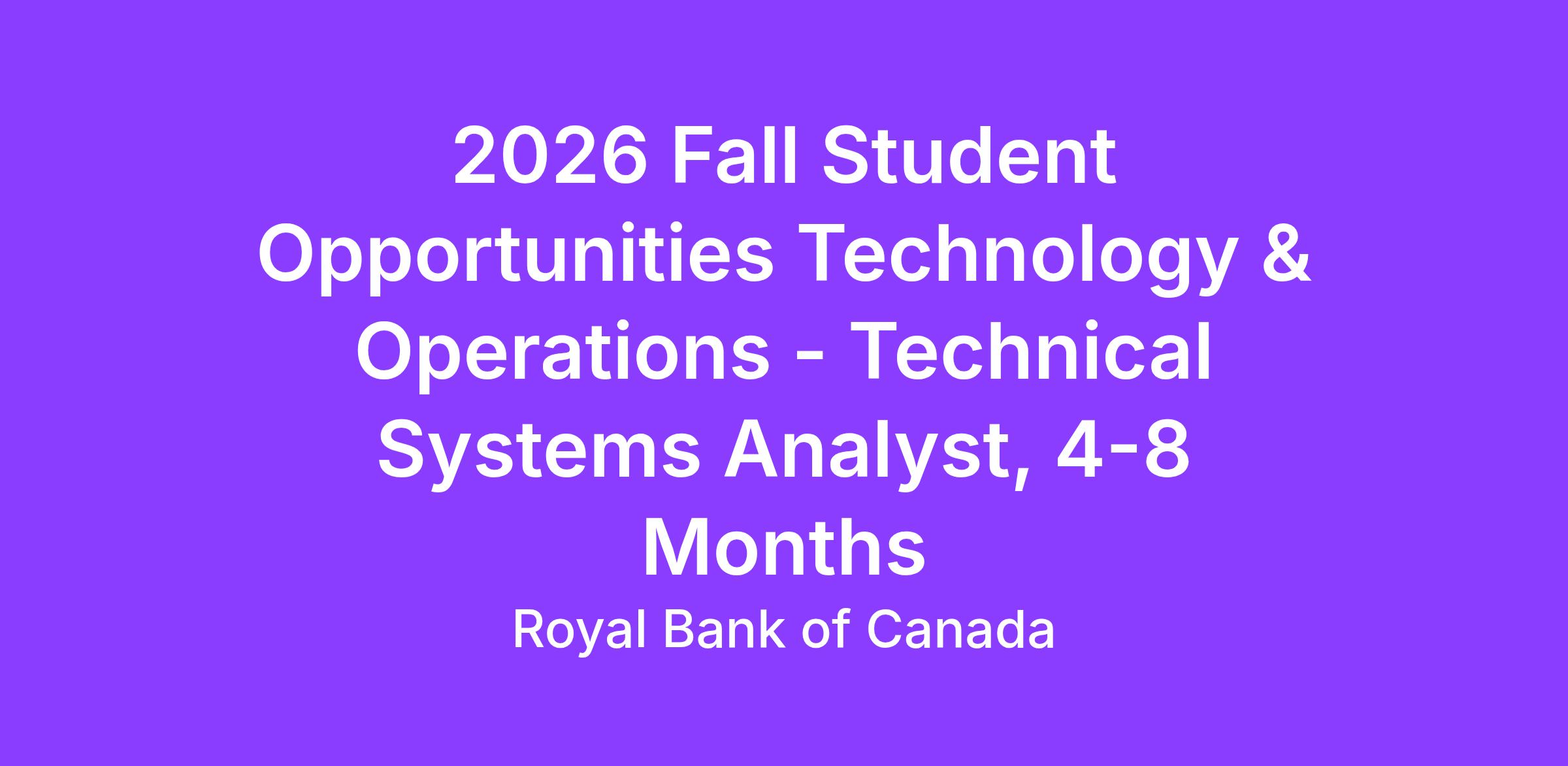 2026 Fall Student Opportunities Technology & Operations - Technical Systems Analyst, 4-8 Months
