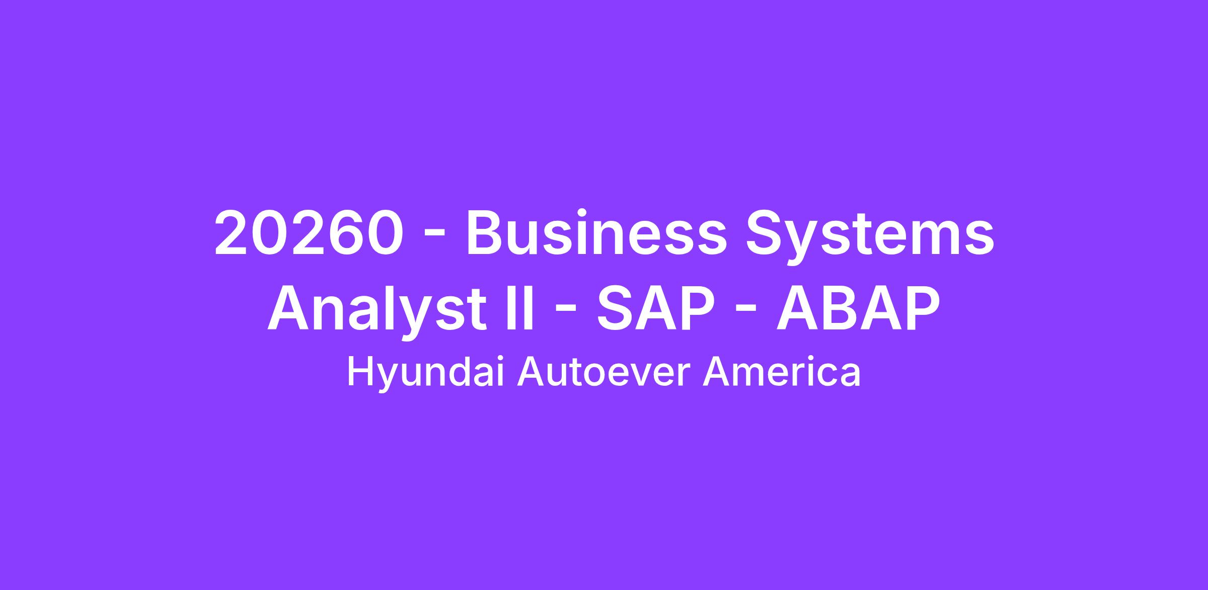 Business Systems Analyst II - SAP - ABAP