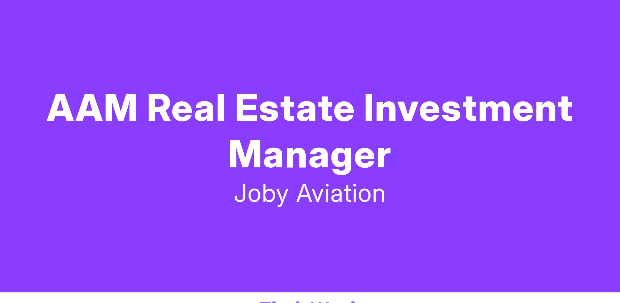 As a Real Estate Investment Manager for the emerging Advanced Air Mobility Industry, you will oversee the acquisition and management of a portfolio of transportation infrastructure and properties controlled and operated by Joby. This role requires expertise in real estate investment, asset management, financial analysis, strategic planning, transportation, and strategic partnerships. You will work closely with property managers, leasing teams, financial analysts, and investors to maximize the performance and profitability of the real estate assets. This position will report to our Corporate Development organization but will have strong cross-functional relationships with our Product Intelligence, Infrastructure Engineering, Operations, OEM, Government Relations, Legal, and Finance Teams.