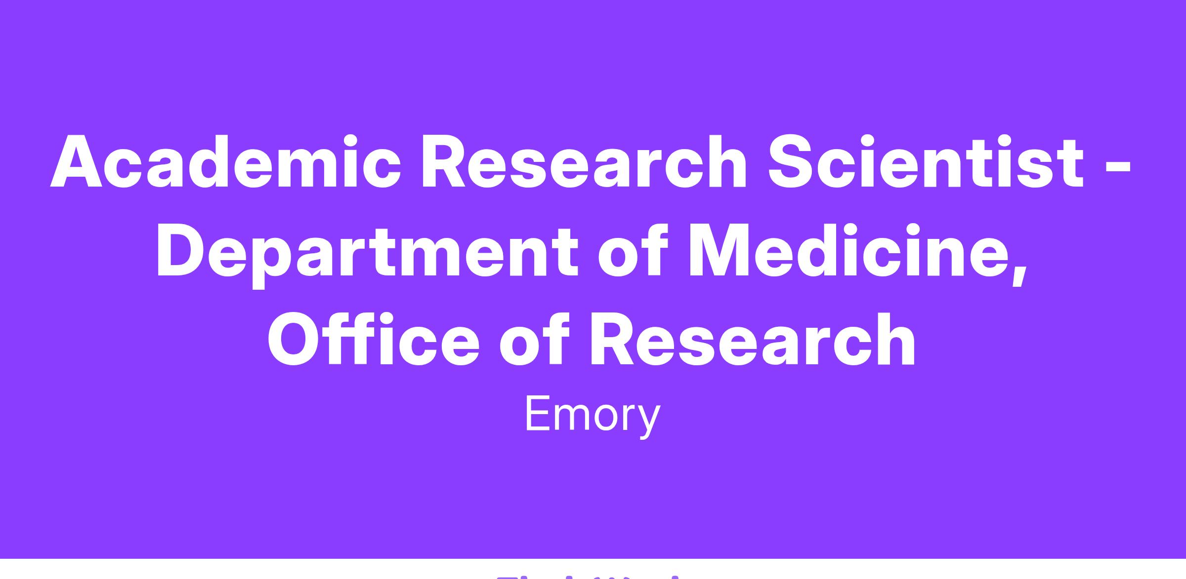 The Department of Medicine (DOM) is home to more than 800 diverse faculty members who are leaders in research, education, and patient care across 10 academic divisions. Our research program is the largest in the Emory School of Medicine, with almost $200M in annual research funding, over 1,200 publications, and over 380 active clinical trials. The position of Scientist, DOM Office of Research will be the scientific program lead who is responsible for development and execution of key programs, events, and initiatives in the DOM Office of Research. This individual reports to the Vice Chair of the Research for the Department of Medicine. Preferred experience would be a PhD in a relevant scientific field (e.g., biology, chemistry, physics, etc.) and two years of professional level experience in a research laboratory who is ready to take the next step of having a broad impact by promoting collaborative programs and novel initiatives to enrich the Department of Medicine research community.
