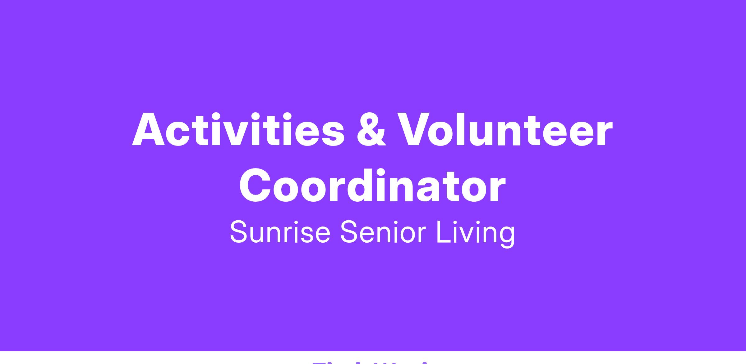 At Sunrise, our Activities & Volunteer Coordinator is responsible for leading the day to day activities and programs for a Sunrise Senior Living community.