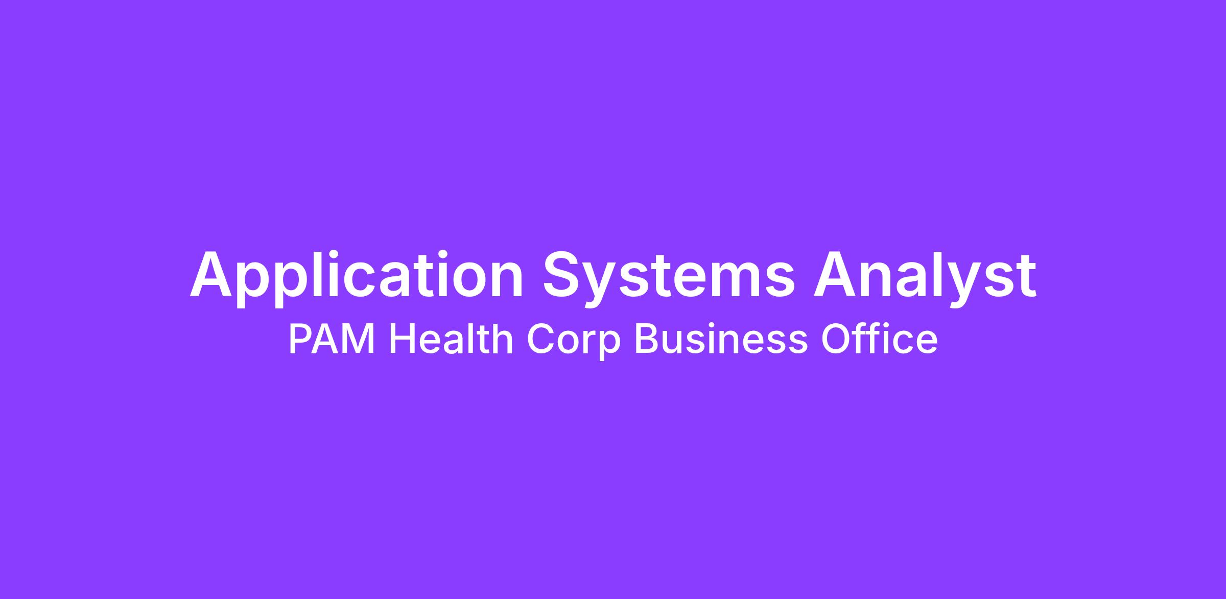The Application Systems Analyst provides support for all systems that exist within the Revenue Cycle/Patient Management Solution portfolio for PAM Health. This position will also be responsible for maintaining relationships with the PAM Health Business Owners of the solutions within the portfolio as the IS Business Partner. Must have excellent organizational skills, attention to detail, and commitment to delivery at the highest level of quality. This is an exempt position. Up to 70% travel required.