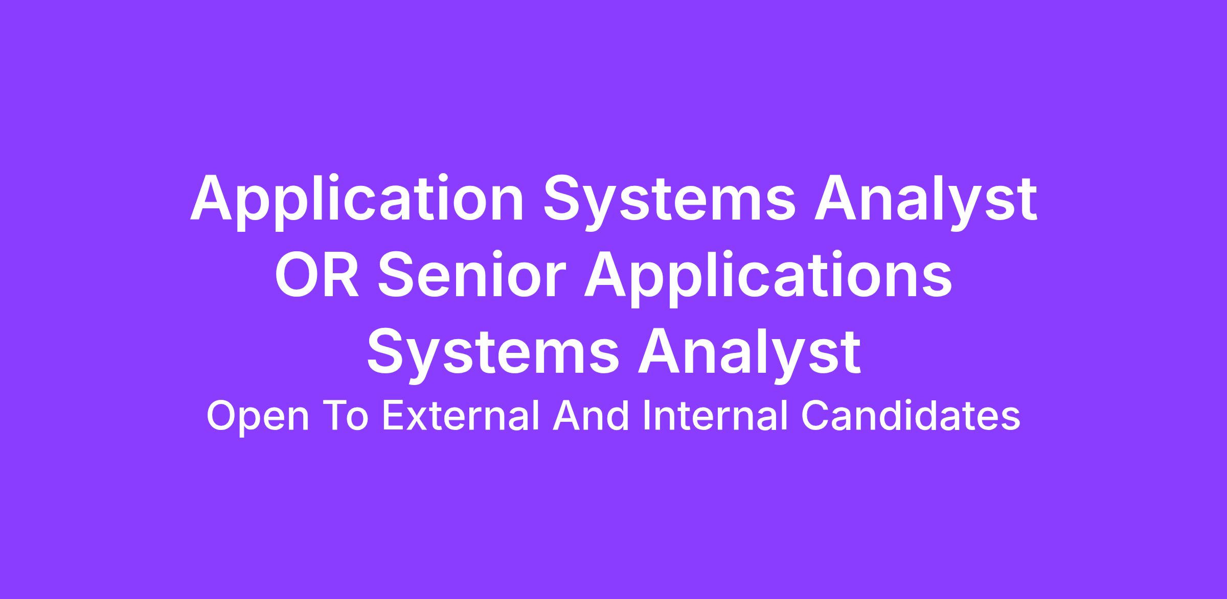 Senior Applications Systems Analyst Requires: