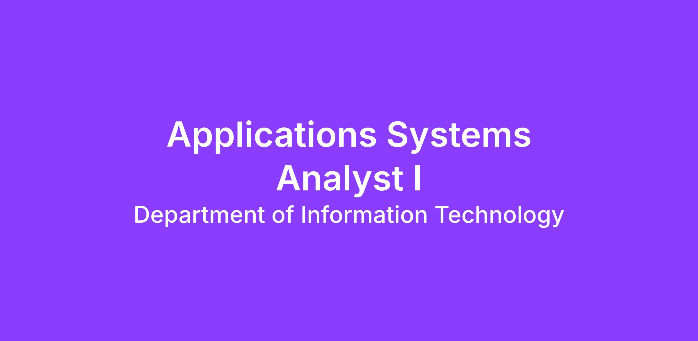 Applications Systems Analyst I (NS)Position Number