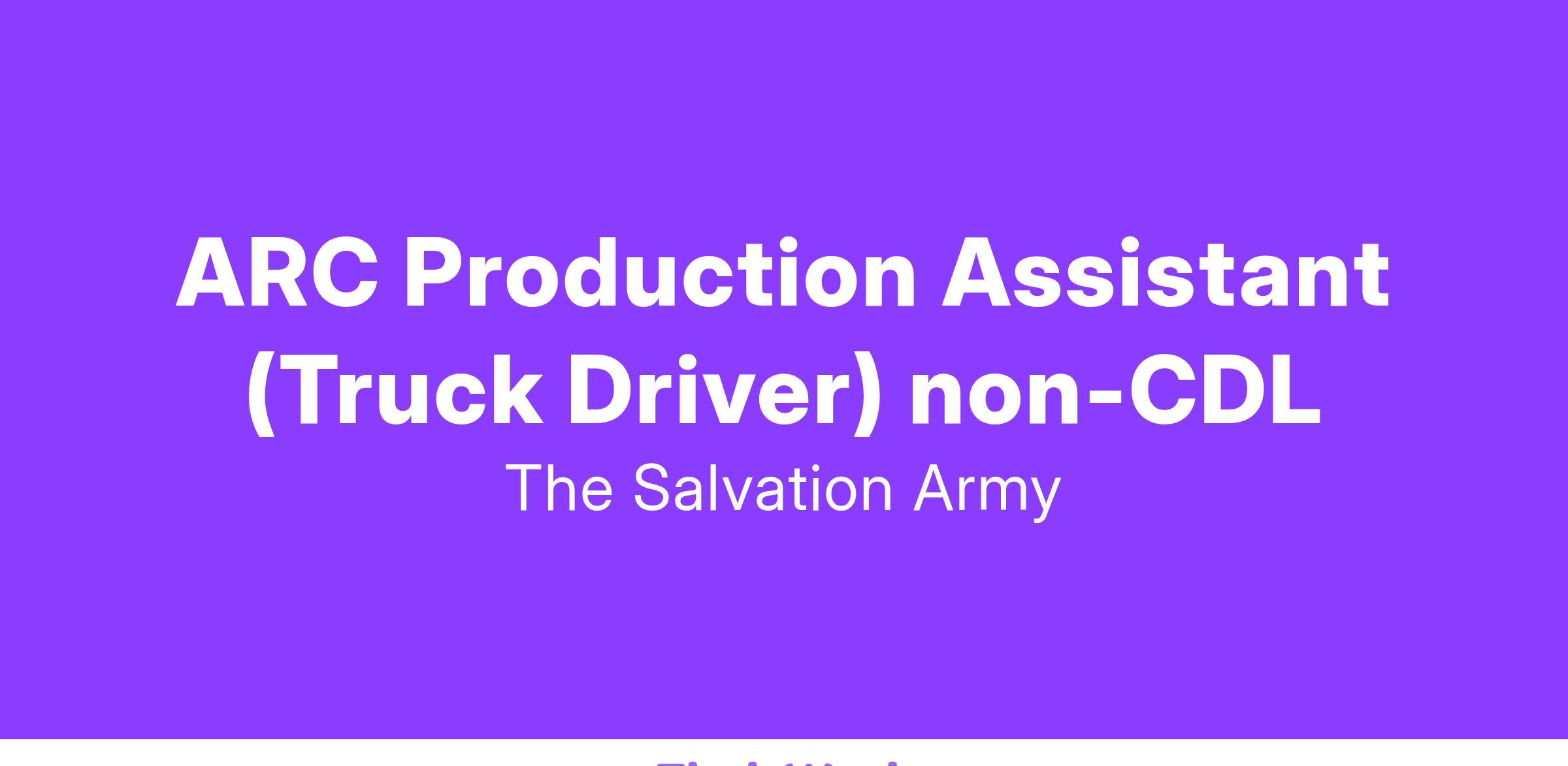 The Salvation Army Adult Rehabilitation Center is seeking a Production Assistant (Truck Driver) to complete driving routes for pickup and/or drop off of donations at the warehouse, assigned donation boxes, and at donor homes.