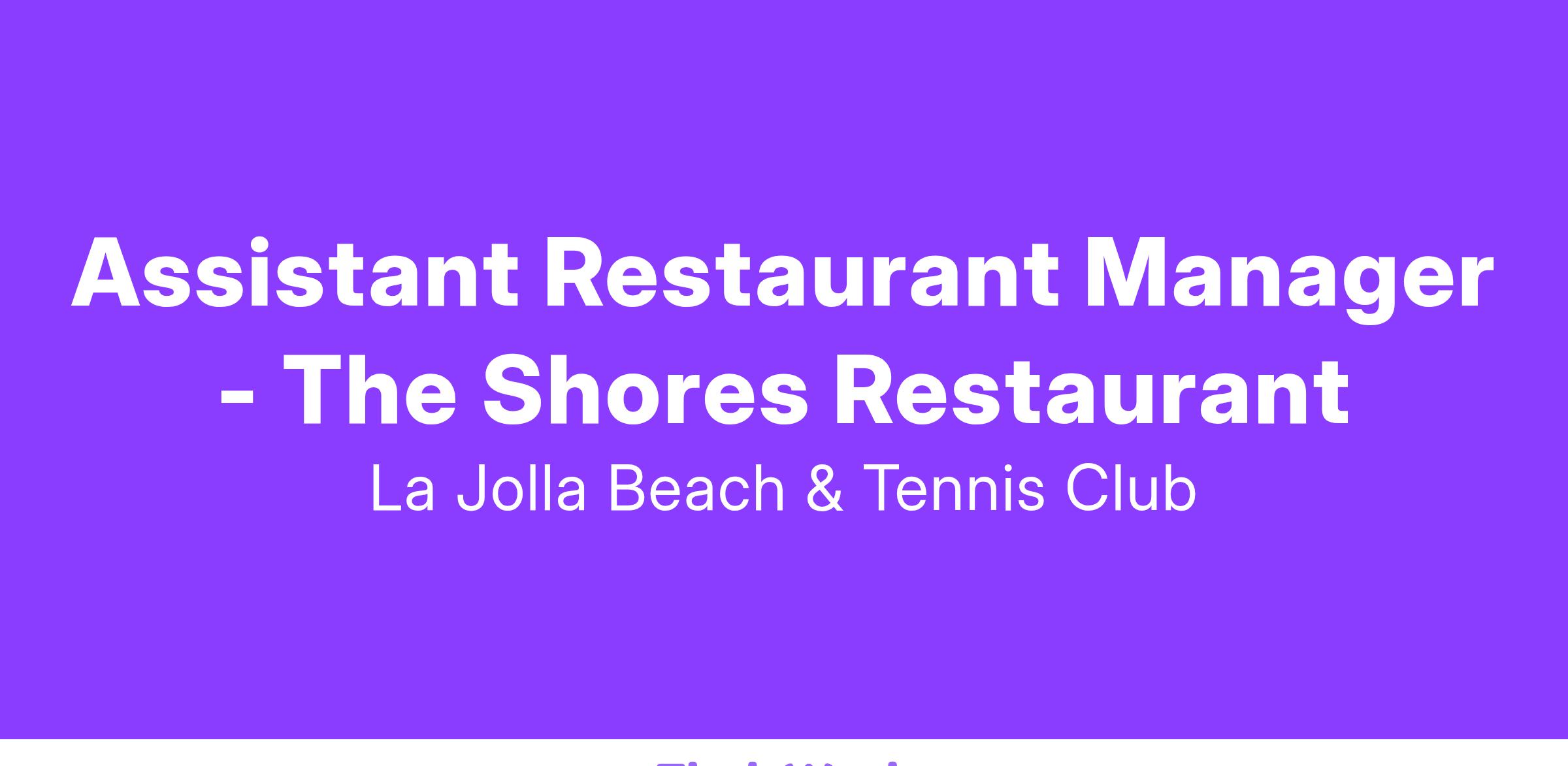 Assistant Restaurant Manager - The Shores Restaurant