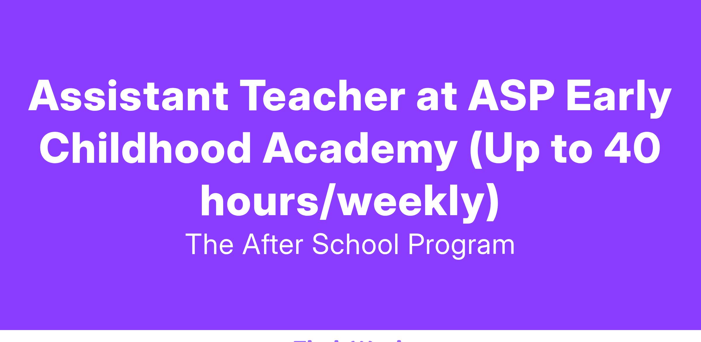 Assistant Teacher at ASP Early Childhood Academy (Up to 40 hours/weekly)
