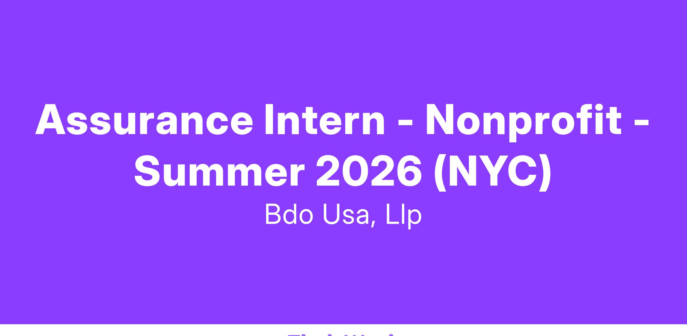 BDO is a place for energetic self-starters who can think and act like entrepreneurs. As an Intern in our Assurance practice, you will begin to utilize your educational background as well as your organizational skills as you serve the firm's dynamic client base. You will assist in problem solving and fact-finding, working side-by-side with more experienced team members who can provide you with direction, coaching and learning opportunities. This opportunity will allow you to gain a unique hands-on perspective on our firm’s practices and people, as well as beginning to forge the critical relationships that will help maximize your chance for success in your career.