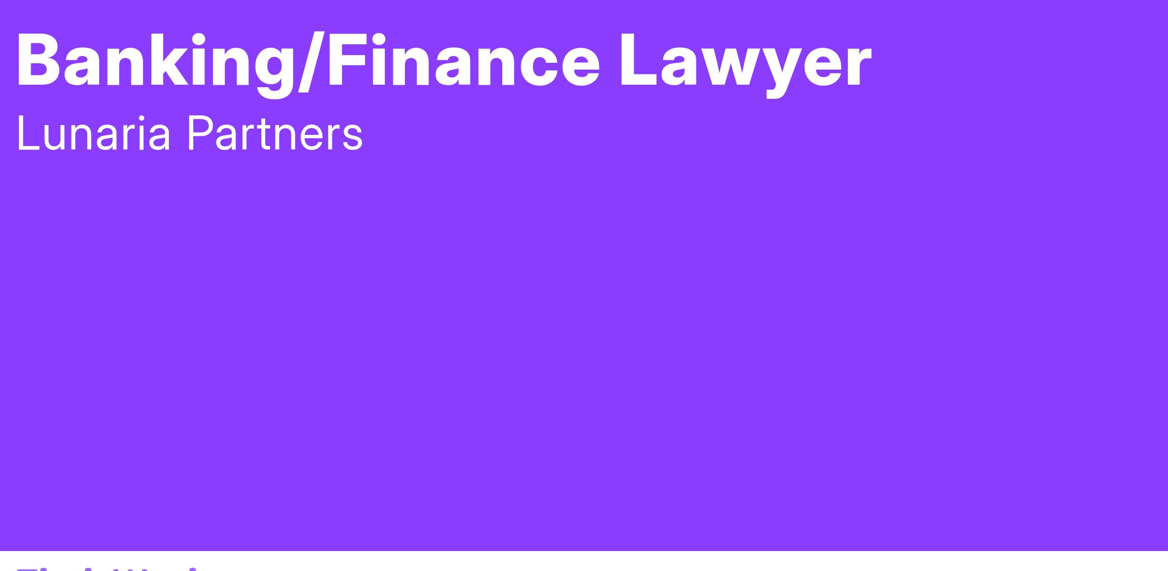 Lunaria Partners are advertising this Banking/Finance Associate/Senior Associate Solicitor role on behalf of our client. We strive to respond to all applications but due to the volume received, this isn't always possible. If you have not heard from us in 7 days your application has been unsuccessful on this occasion.