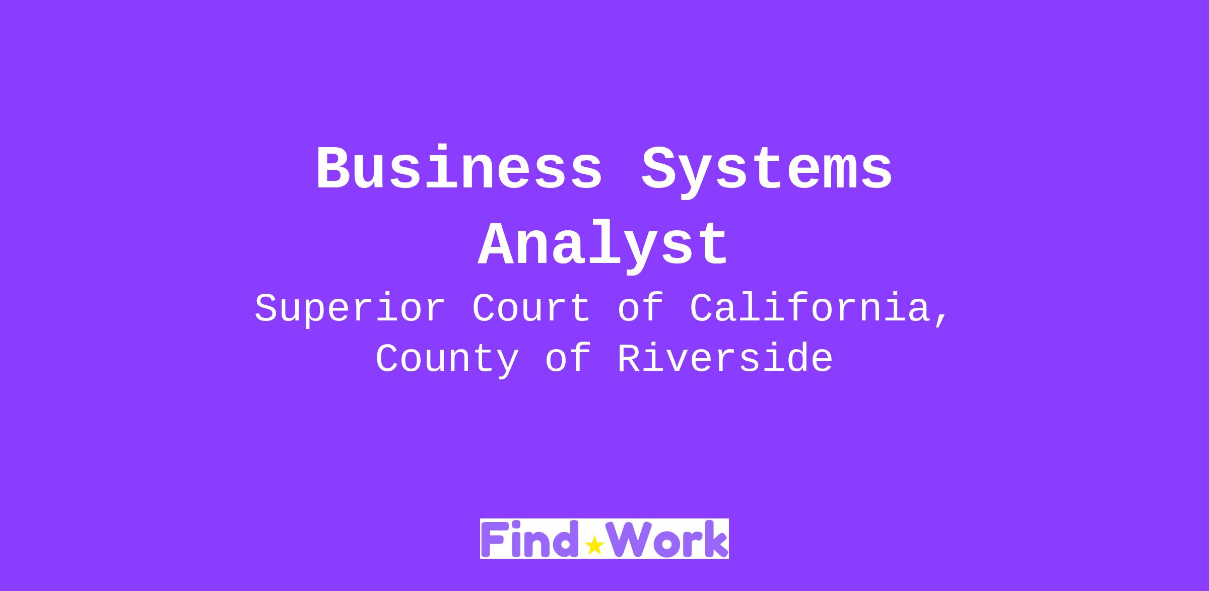 Are you ready to turn your technical expertise into meaningful impact? The Riverside Superior Court is calling on sharp thinkers and problem-solvers to apply for our Business Systems Analyst.