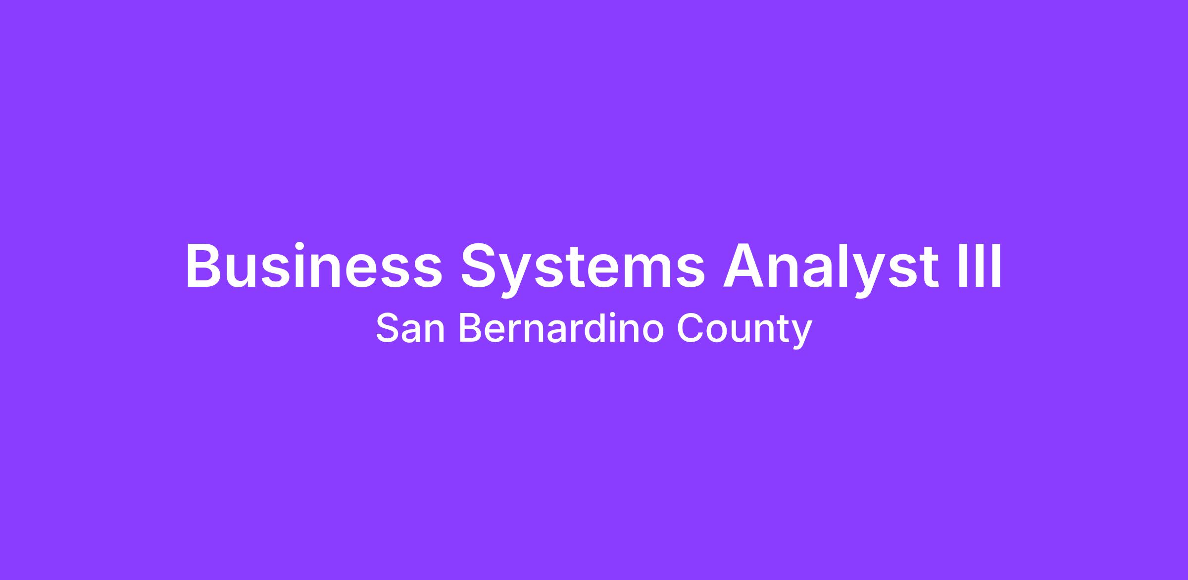 Business Systems Analysts III for various vacancies across the County. Business Systems Analysts III analyze appropriate business needs for business application and information technology needs and lead projects to create innovative IT business solutions. Assignments include studies in workflow and technology integration; projects requiring research, analysis, documentation, solution development,