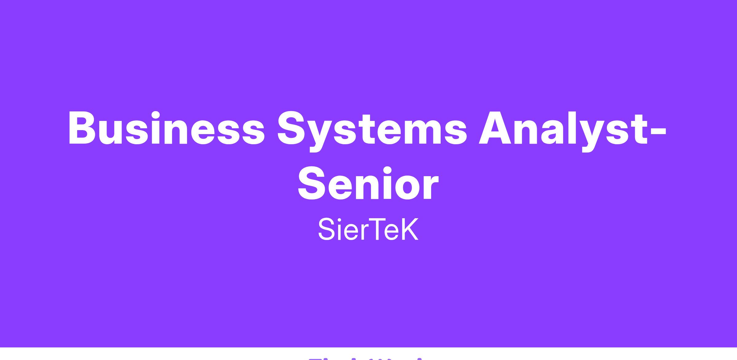 SierTeK Ltd. is seeking a Business Systems Analyst-Senior to support an opportunity remotely.