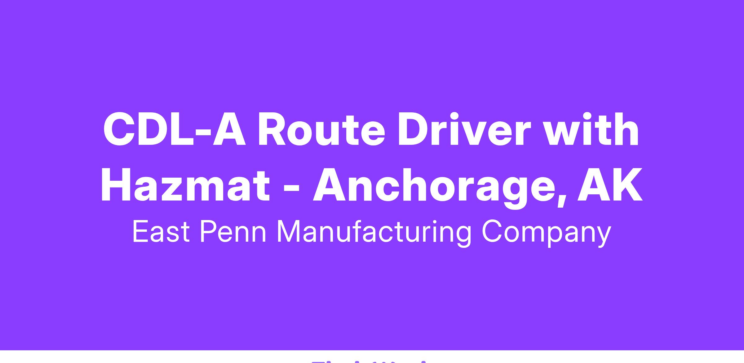 Anchorage, Alaska Class A Route Driver with Hazmat Endorsement