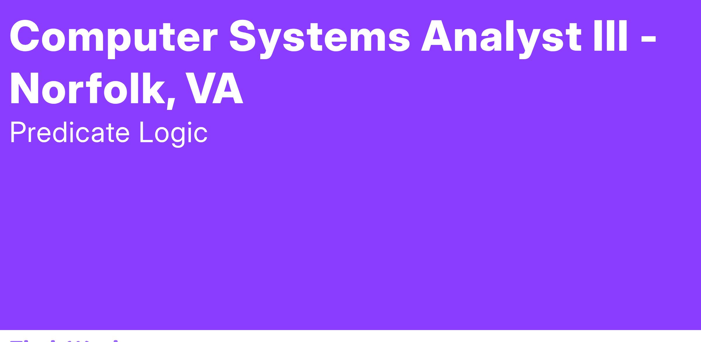 Predicate Logic is looking for a motivated Computer Systems Analyst III to join our team in Norfolk, VA.