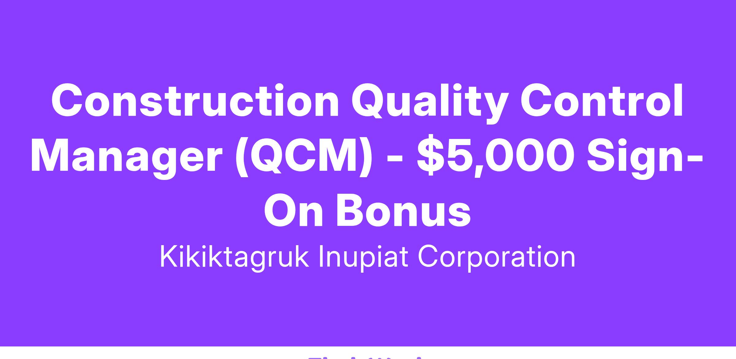 Construction Quality Control Manager (QCM) - $5,000 Sign-On Bonus