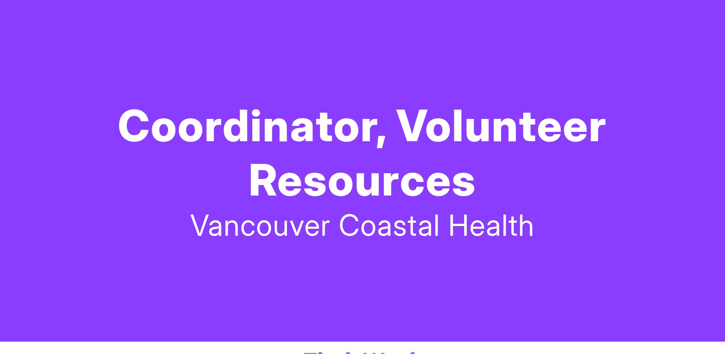 Come work as a Coordinator, Volunteer Resources with Vancouver Coastal Health (VCH)!