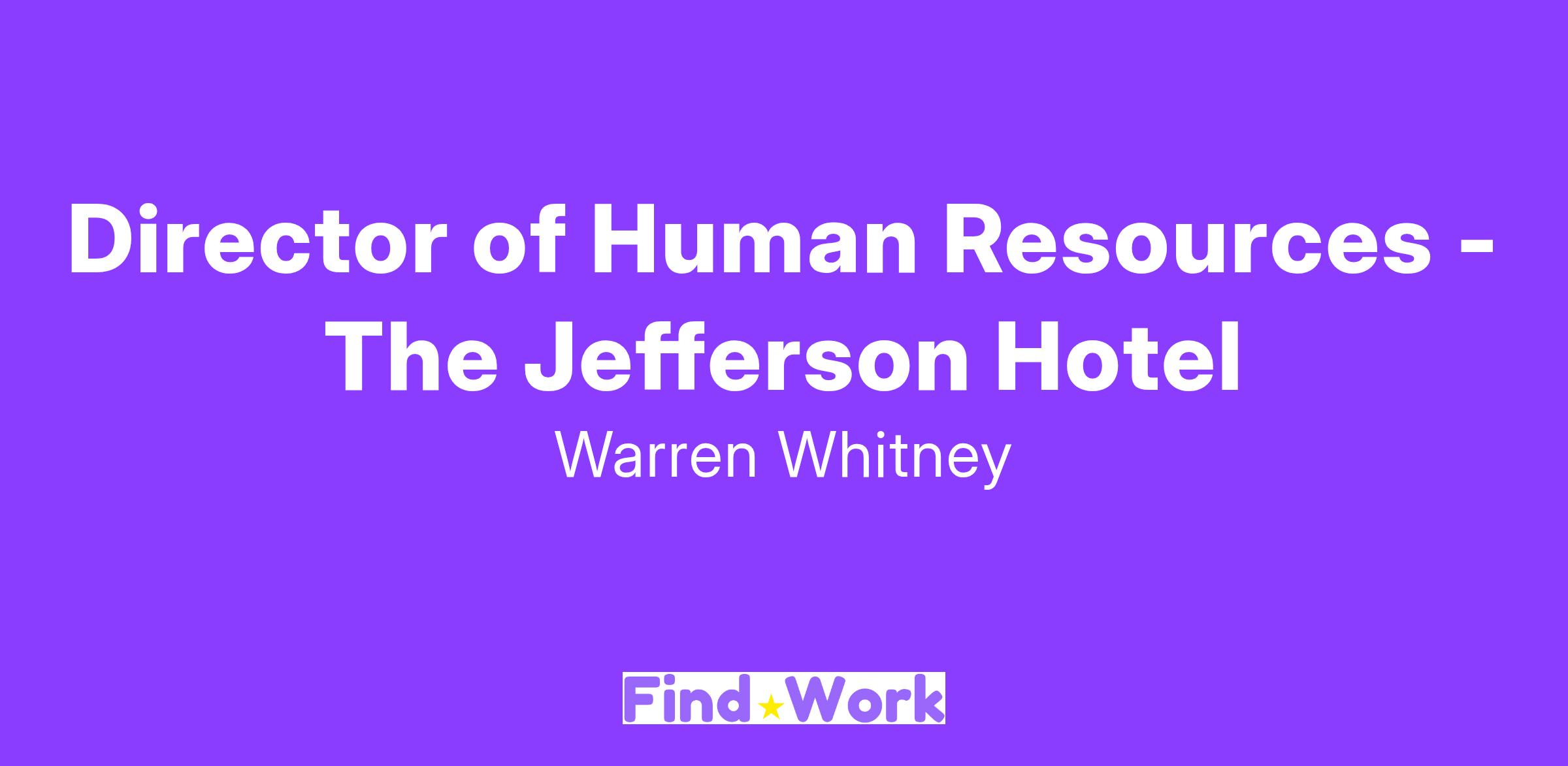 Director of Human Resources - The Jefferson Hotel