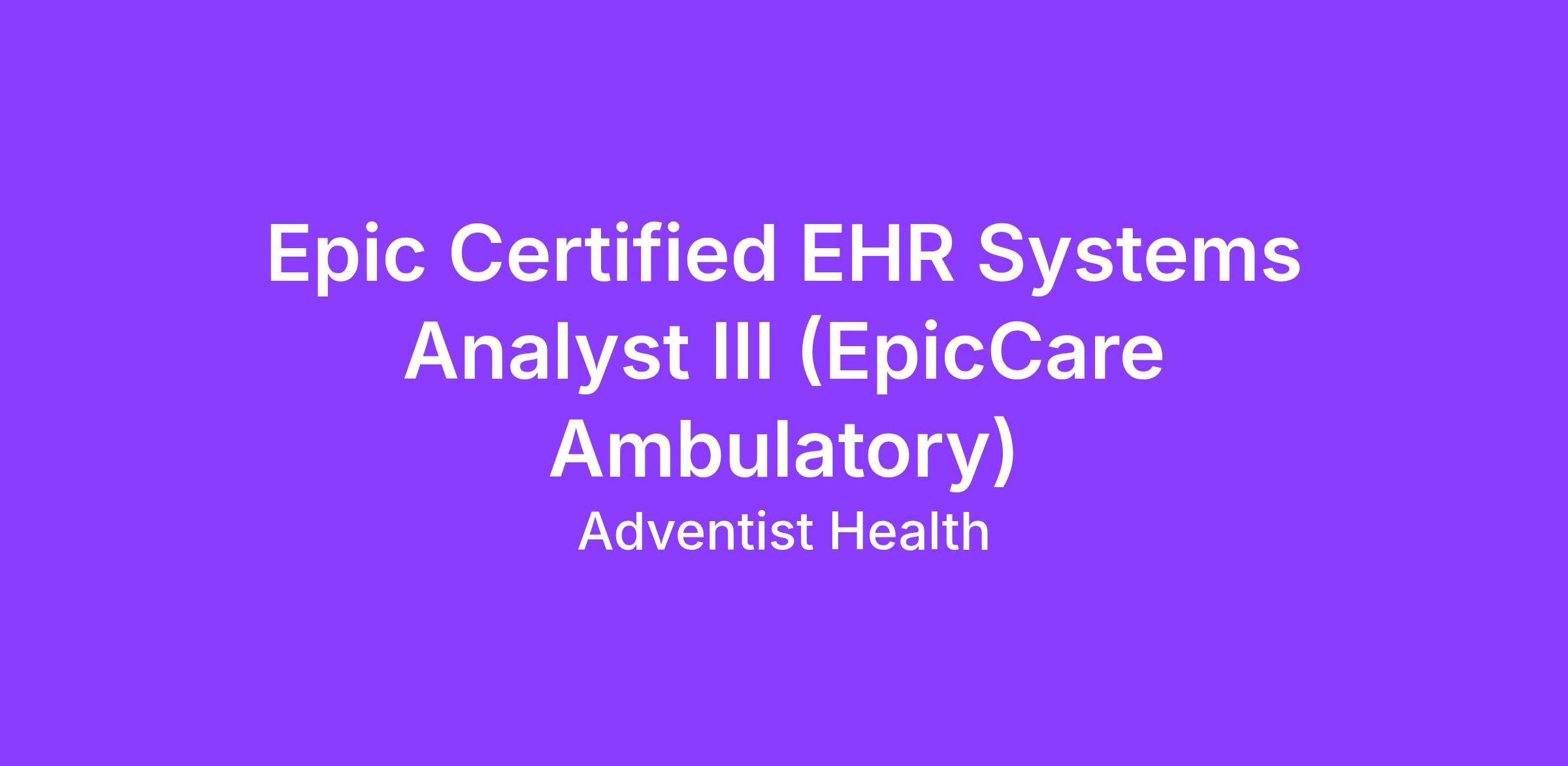 Adventist Health Roseville is seeking an Epic‑Certified EHR Systems Analyst III for a full‑time, day‑shift position.