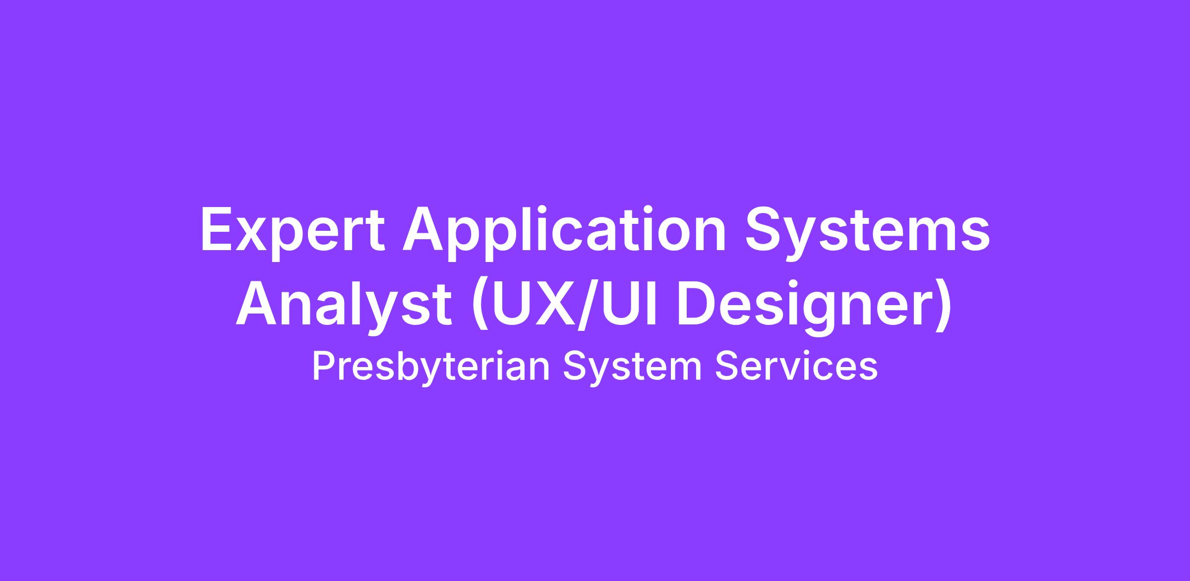 Build your Career. Make a Difference. Presbyterian is hiring a skilled Expert Application Systems Analyst (UX/UI Designer). Duties include instructing, directing, and checking the work of other systems analysis personnel. Formulates and defines system scope and objectives based on user defined needs. Devises or modifies procedures to solve complex problems considering computer equipment capacity and limitations, operating time, and form of desired results. Prepares detailed specifications from which programs will be written. Analyzes and revises existing system logic difficulties and documentation as necessary. Has full technical knowledge of all phases of applications systems analysis. Responsible for quality assurance review. Acts as project leader for projects with small budgets or limited duration Type of Opportunity: Full time Job Exempt: Yes Job is based: Reverend Hugh Cooper Administrative Center Work Shift: Days (United States of America)Responsibilities: