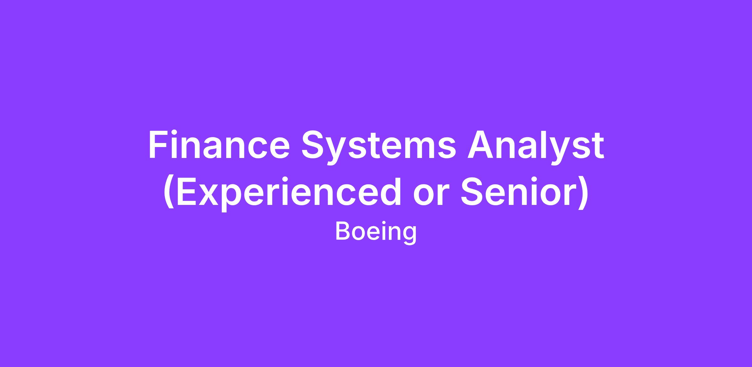 The Boeing CompanyThe Boeing Company is seeking a motivated, driven and highly skilled Finance Systems Analyst (Experienced or Senior) to join our Future Finance Systems team in Tukwila, WA; Arlington, VA; Chicago, IL or Hazelwood, MO.