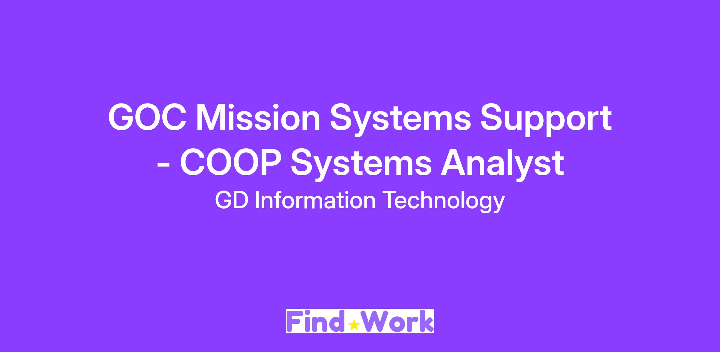 Leverages COOP subject matter expertise in support of GOC Mission Systems engineering services and RDT&E activities.