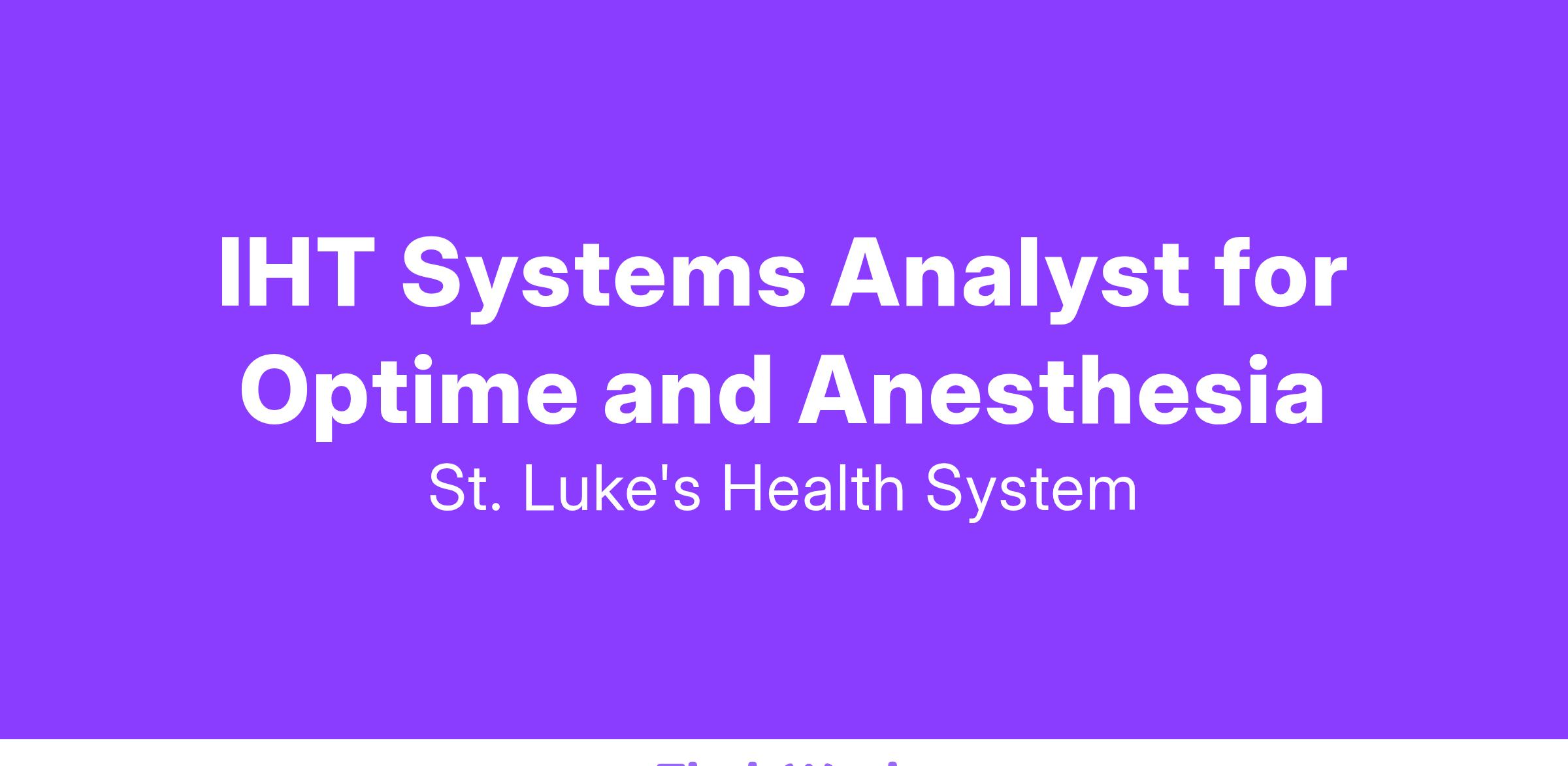 St. Luke's Health System in Boise, ID is seeking a Systems Analyst to join our Surgical Services team.