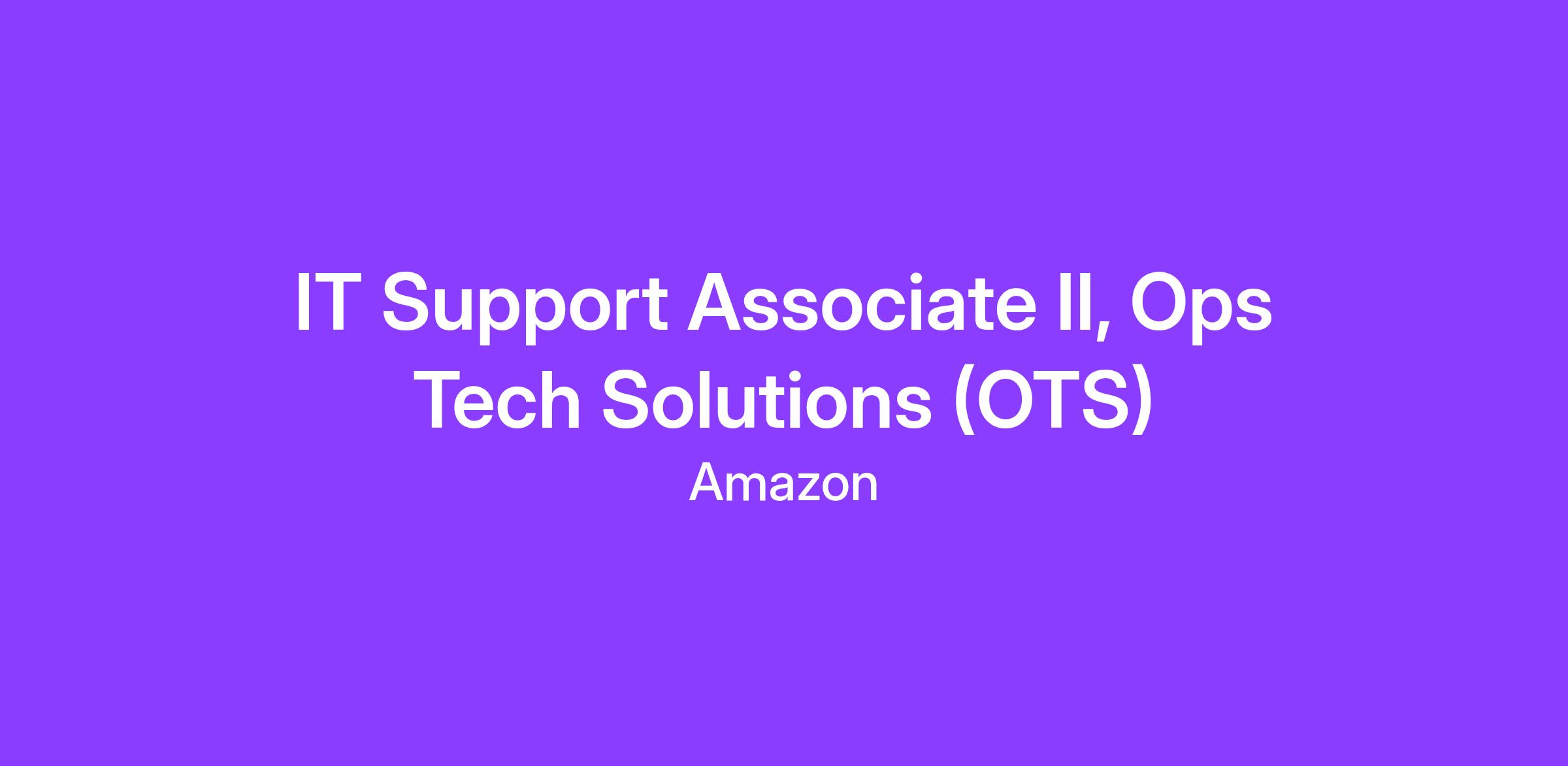 IT Support Associate II, Ops Tech Solutions (OTS)