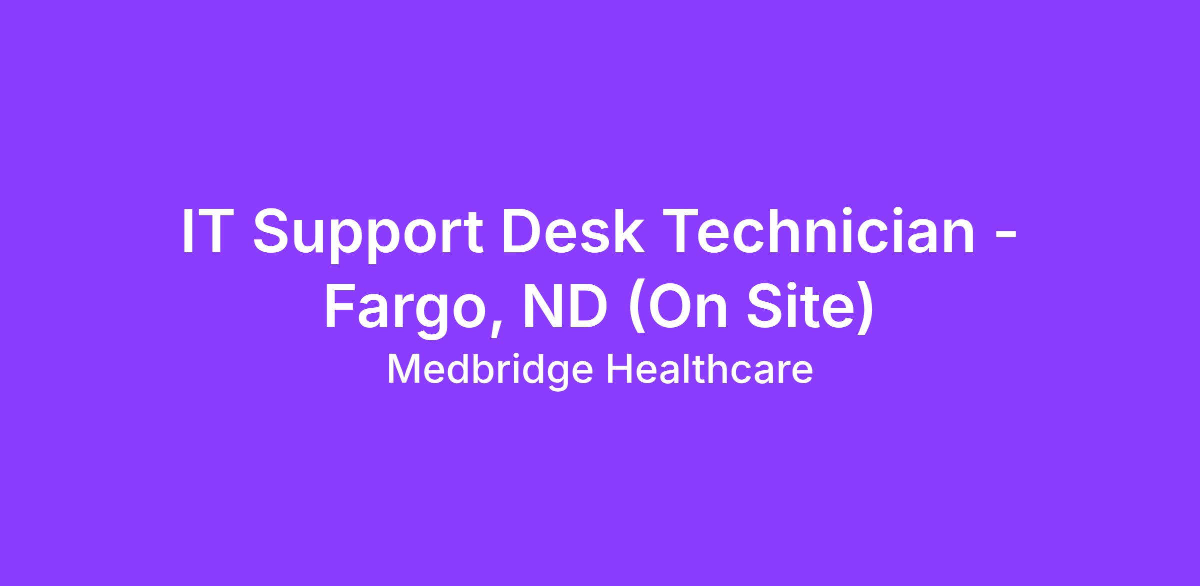 MedBridge Healthcare is seeking an experienced IT Support Desk Technician to support our Fargo, ND operations and partner sites. This role is ideal for a customer focused IT professional who enjoys hands on support, troubleshooting, and working closely with internal teams in a healthcare environment.