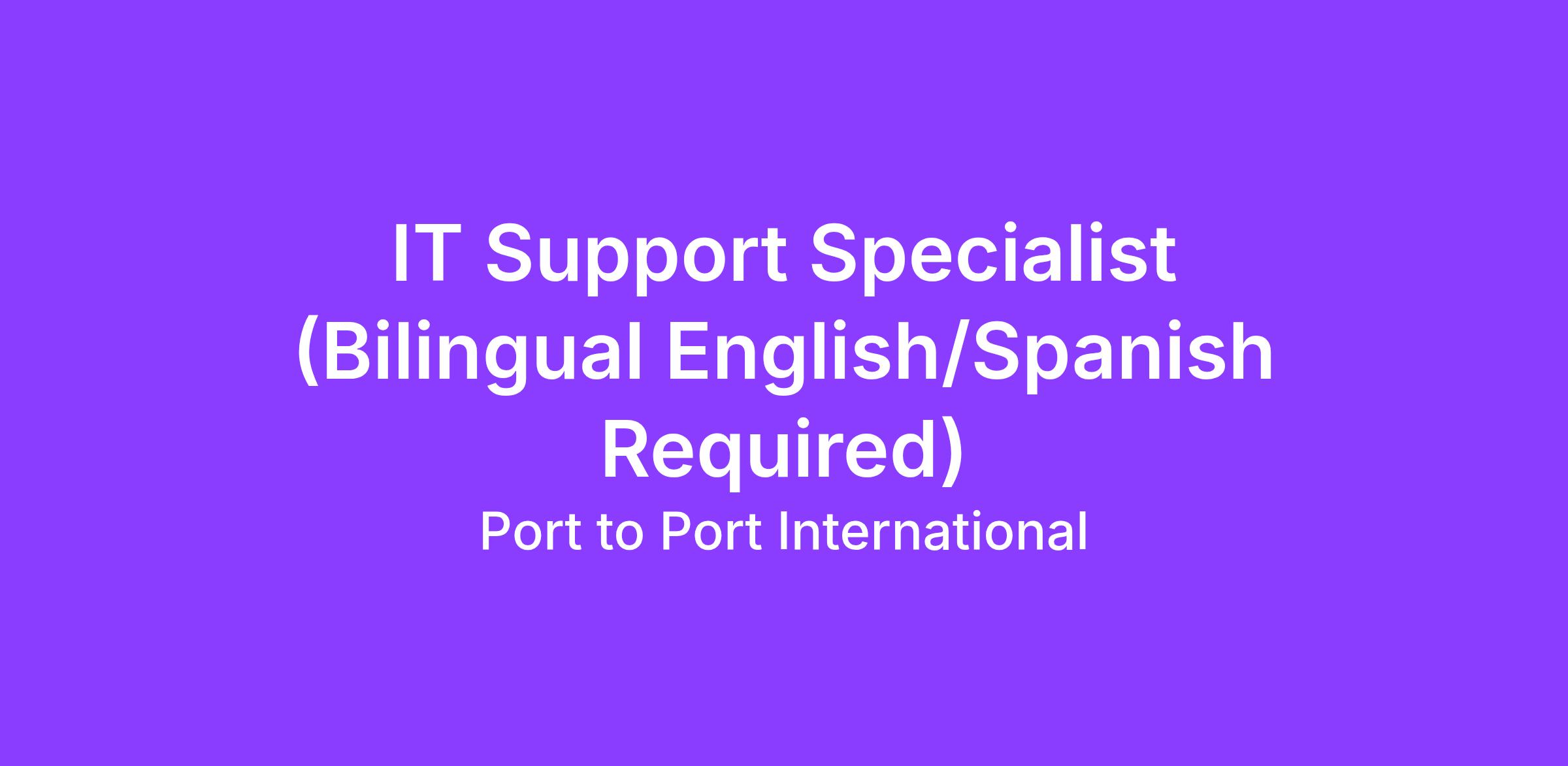 Port to Port International is seeking a Bilingual IT Support Specialist to support our Delaware operations. This position is responsible for providing technical support to end users, maintaining IT systems and infrastructure, and ensuring smooth day-to-day technology operations across multiple locations.