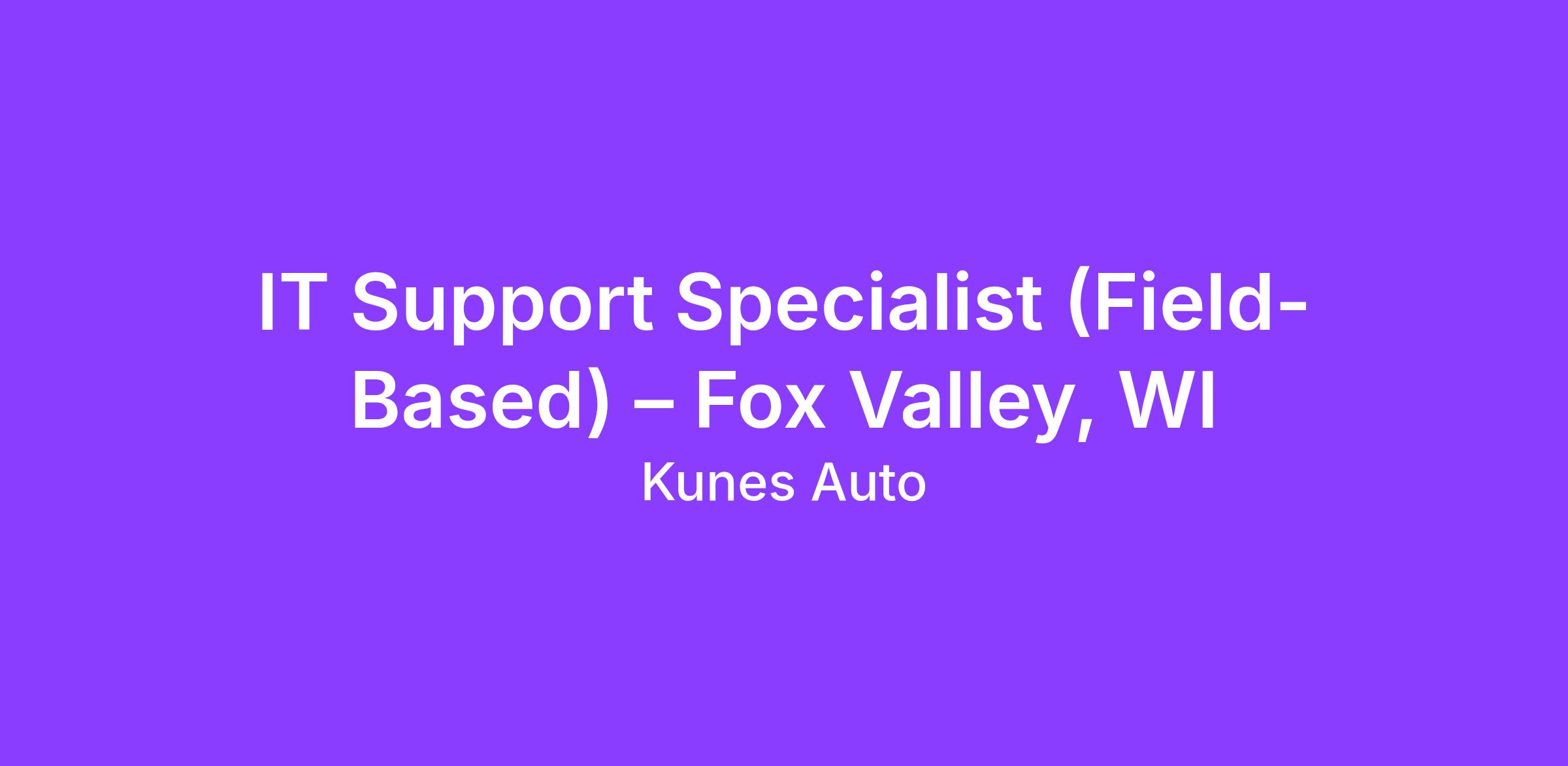 IT Support Specialist (Field-Based) – Fox Valley, WI