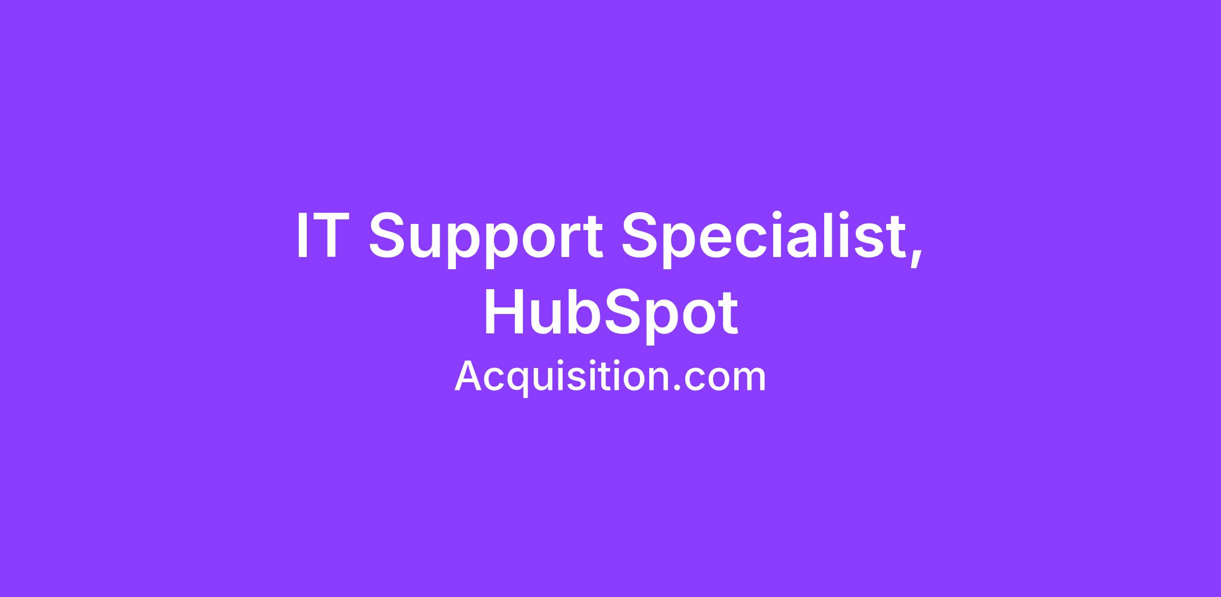 At ACQ, technology should accelerate our people, not slow them down. Reporting to the IT Systems Manager, the IT Support Specialist ensures HubSpot is configured, governed, and supported in a way that removes friction for end users and reinforces operational excellence across the business. This role owns HubSpot support and administration end to end, managing ticket request intake, identifying root causes, and implementing durable solutions.
