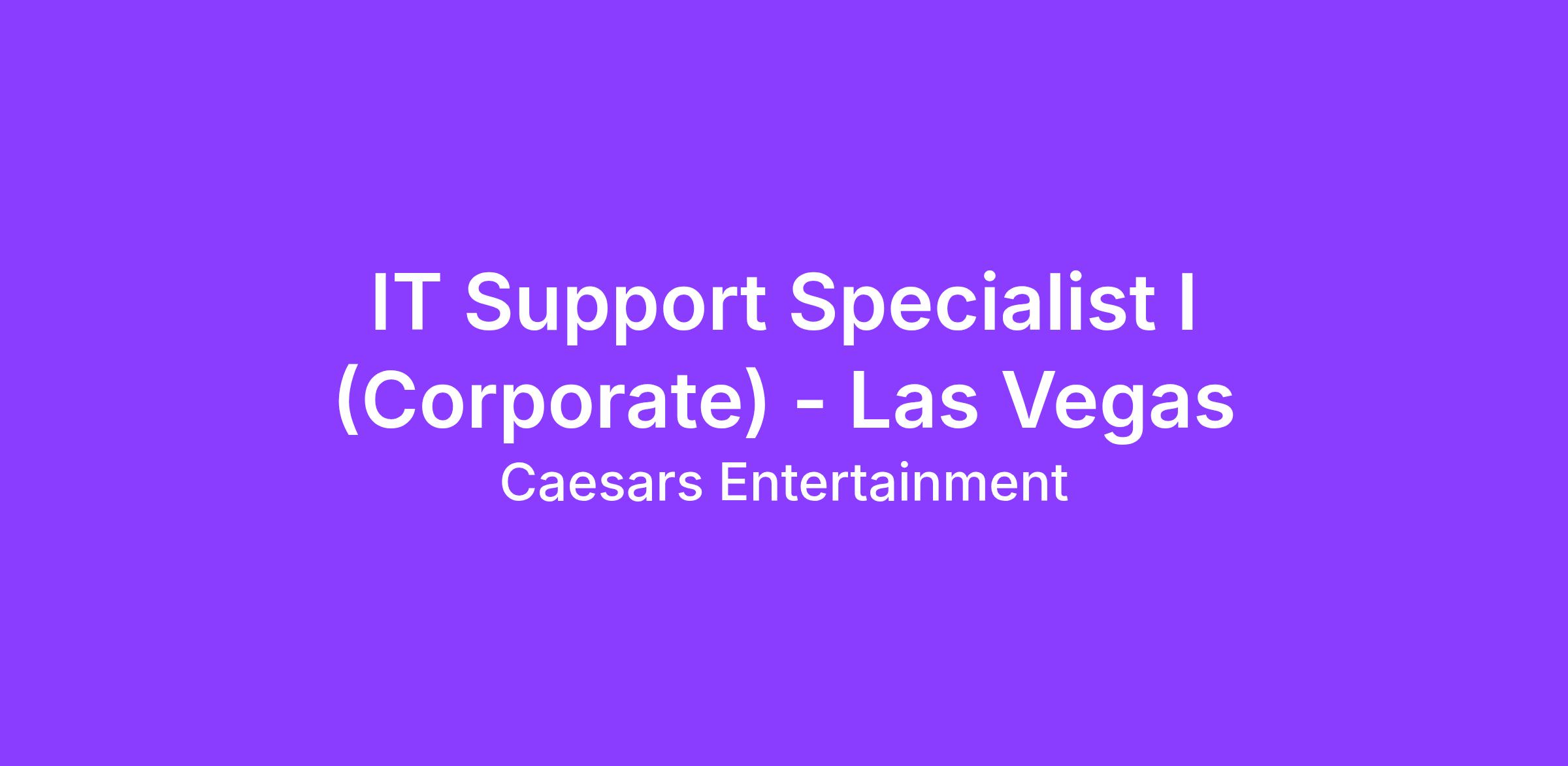 The IT Support Specialist I provides support on computer hardware and software on our Las Vegas Region IT Property Operations team. The Support Specialist will support end users in the installation, upgrade and troubleshooting hardware and software systems at our eight Las Vegas casino properties and back-office facilities.
