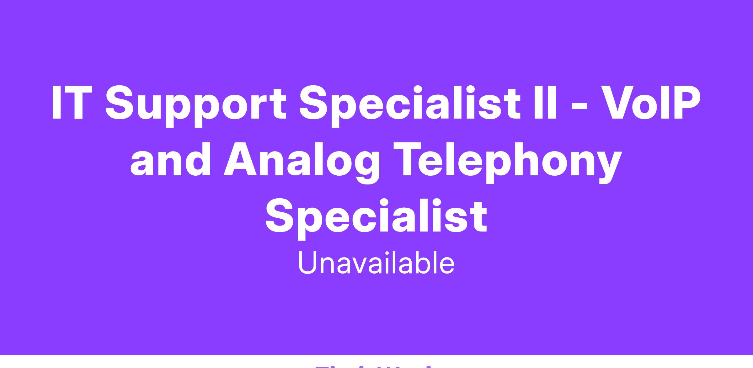 The Information Technology department is seeking a high-performing individual to join our team as an IT Support Specialist II – VoIP and Analog Telephony Specialist.