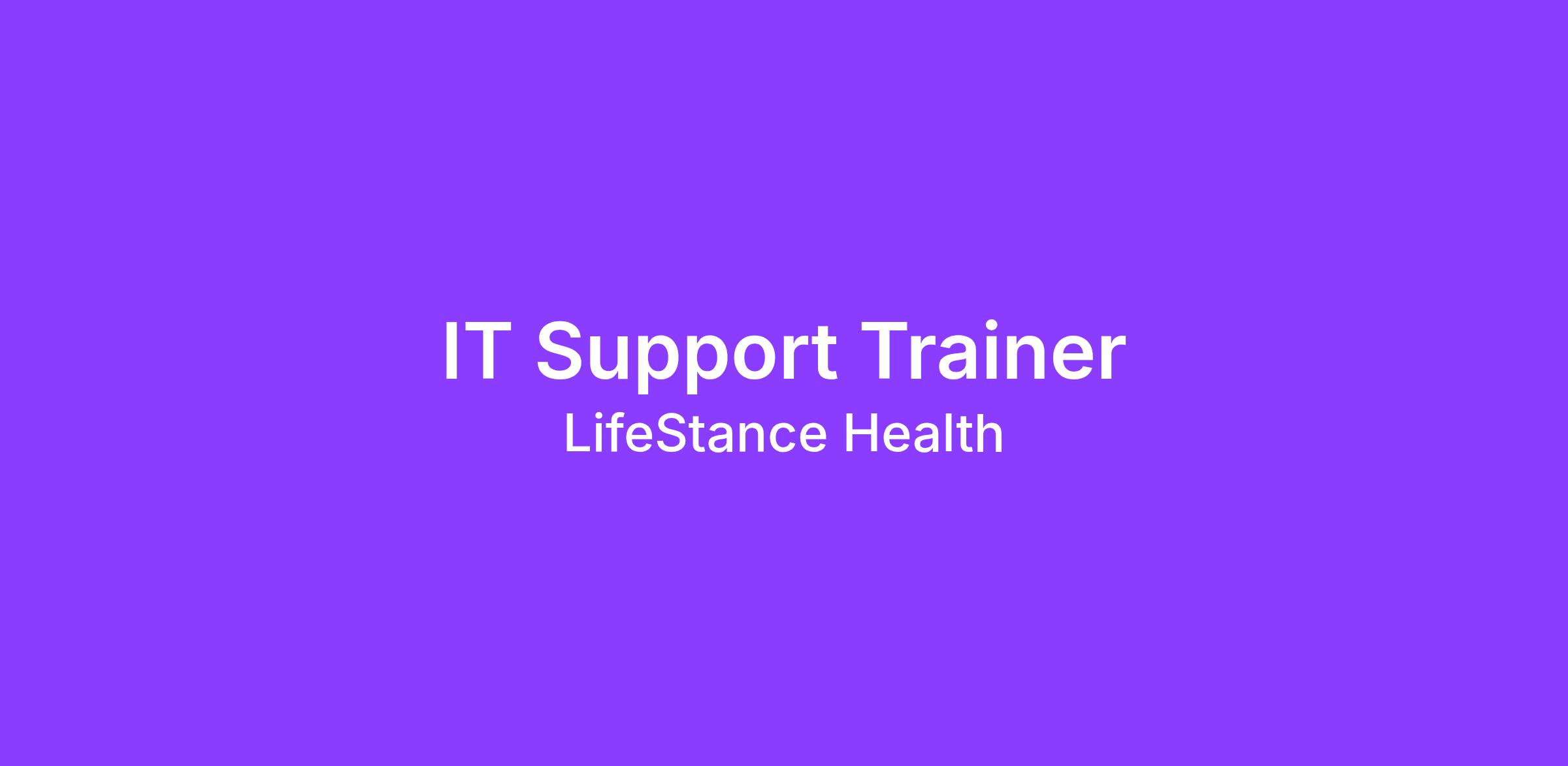 The IT Support Trainer is responsible for developing and delivering training programs that improve technology proficiency for LifeStance end users. This role focuses heavily on Microsoft 365 applications, Windows navigation, basic computing skills, and other core systems used by clinicians and administrative teams.