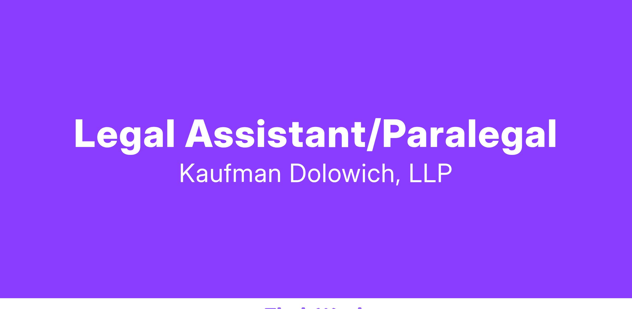 The Wilmington office of Kaufman Dolowich, an AV-rated® firm designated one of the “Best Companies to Work For” among U.S. law firms by U.S. News & World Report, is seeking candidates for a Legal Assistant/Paralegal position. The Legal Assistant/Paralegal works directly with our attorneys to prepare for upcoming cases and gets involved in fact-finding projects. The individual manages attorney caseloads by being organized, professional, responsible, and committed to helping the Firm meet all our clients’ needs. The candidate would be joining a growing, dynamic firm with more than 200 attorneys nationwide.
