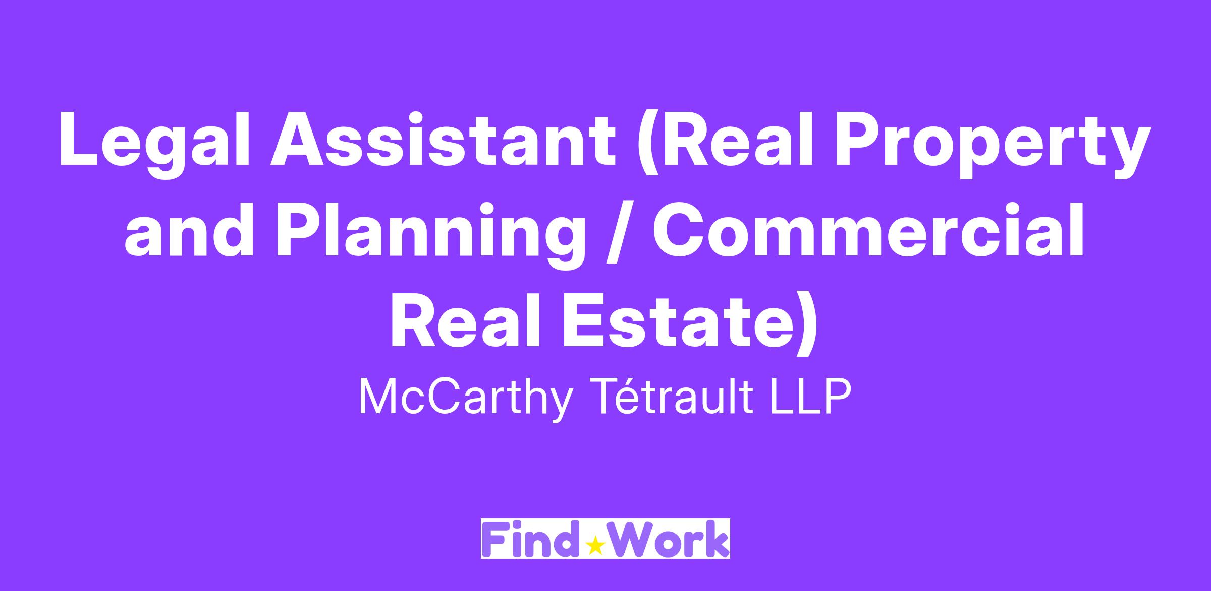 As a Legal Assistant (Real Property and Planning / Commercial Real Estate), you will be: