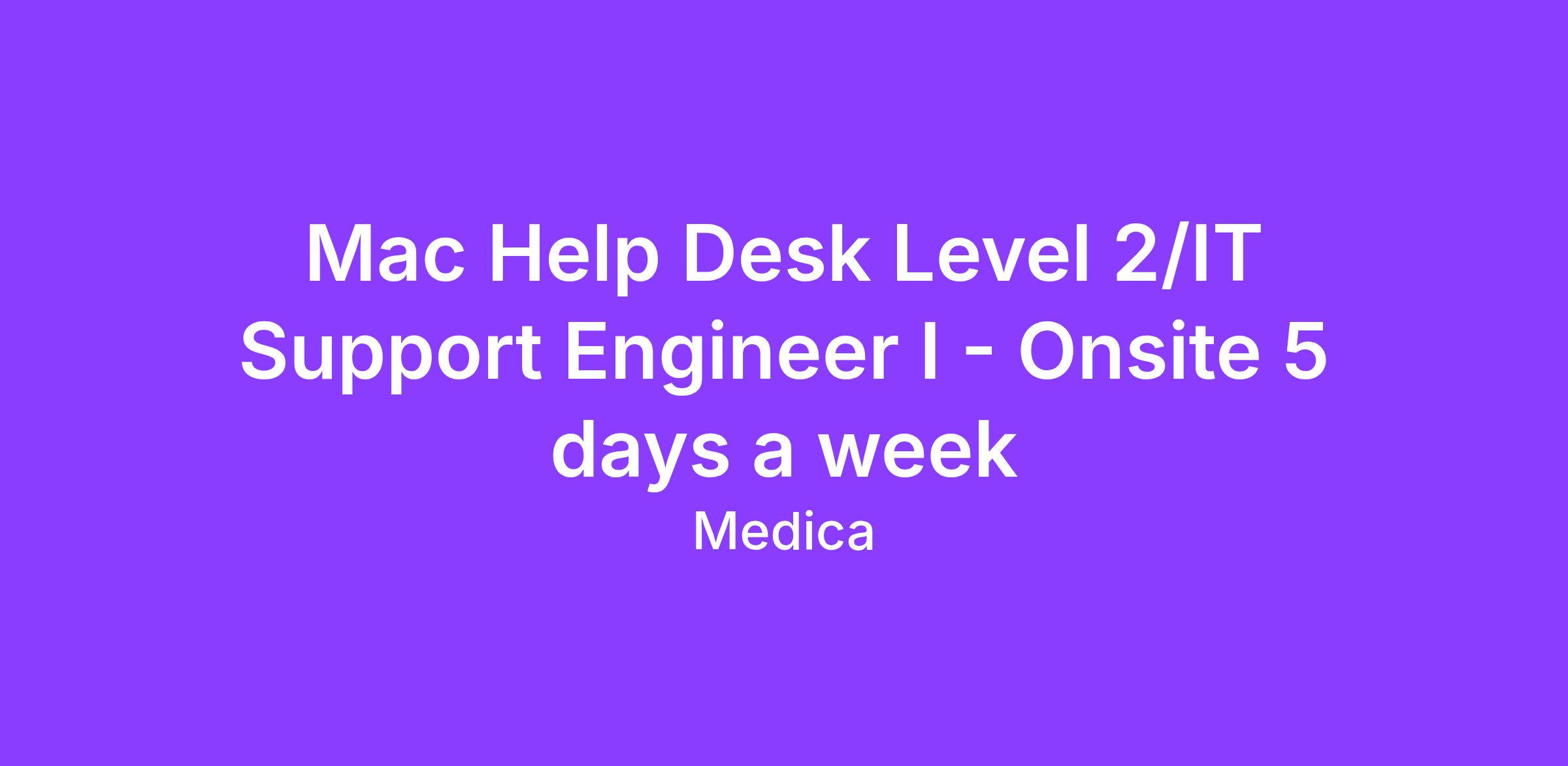Mac Help Desk Level 2/IT Support Engineer I - Onsite 5 days a week