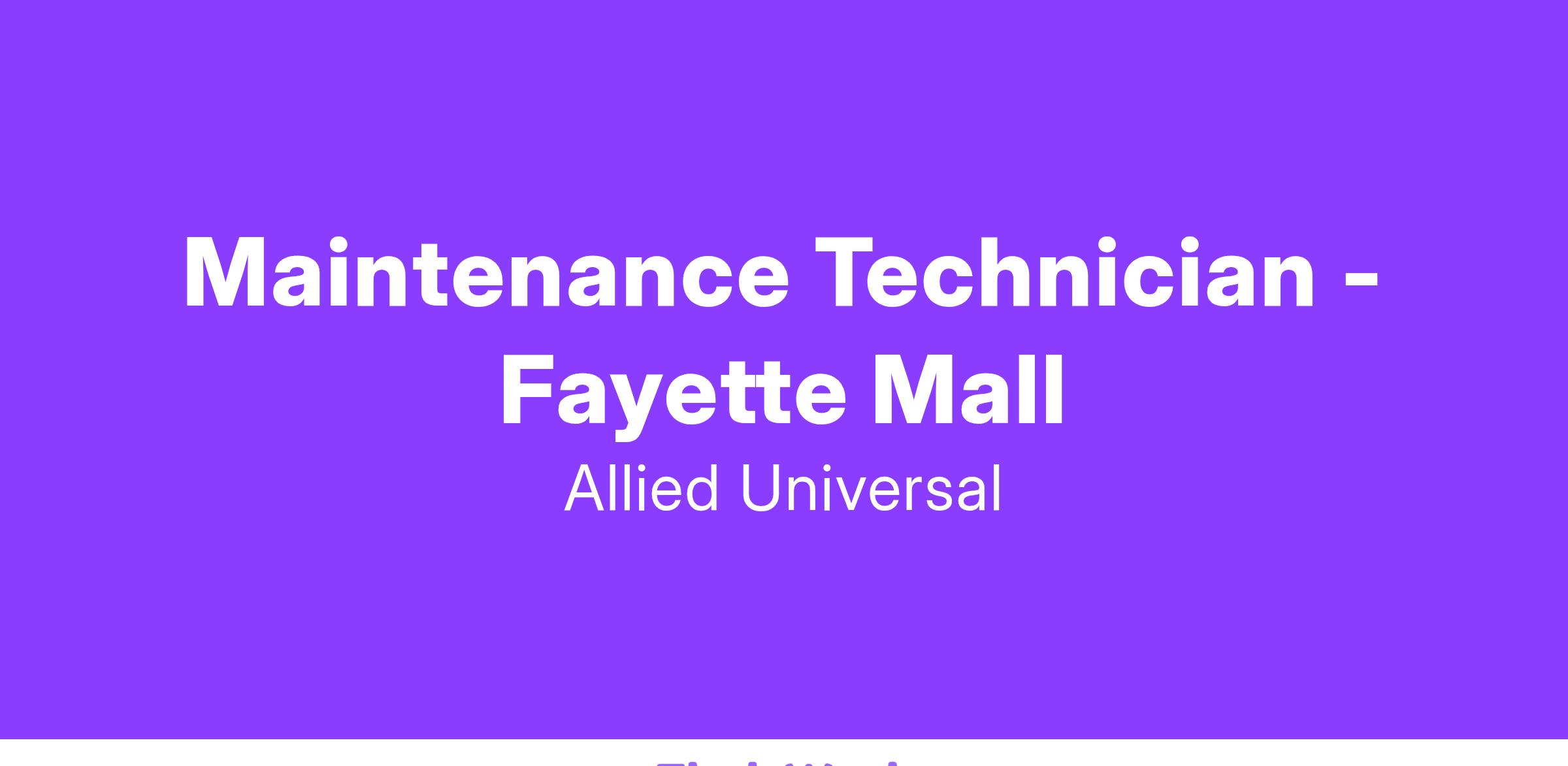 Allied Universal Janitorial Services is seeking the position of a Maintenance Technician at Fayette Mall.