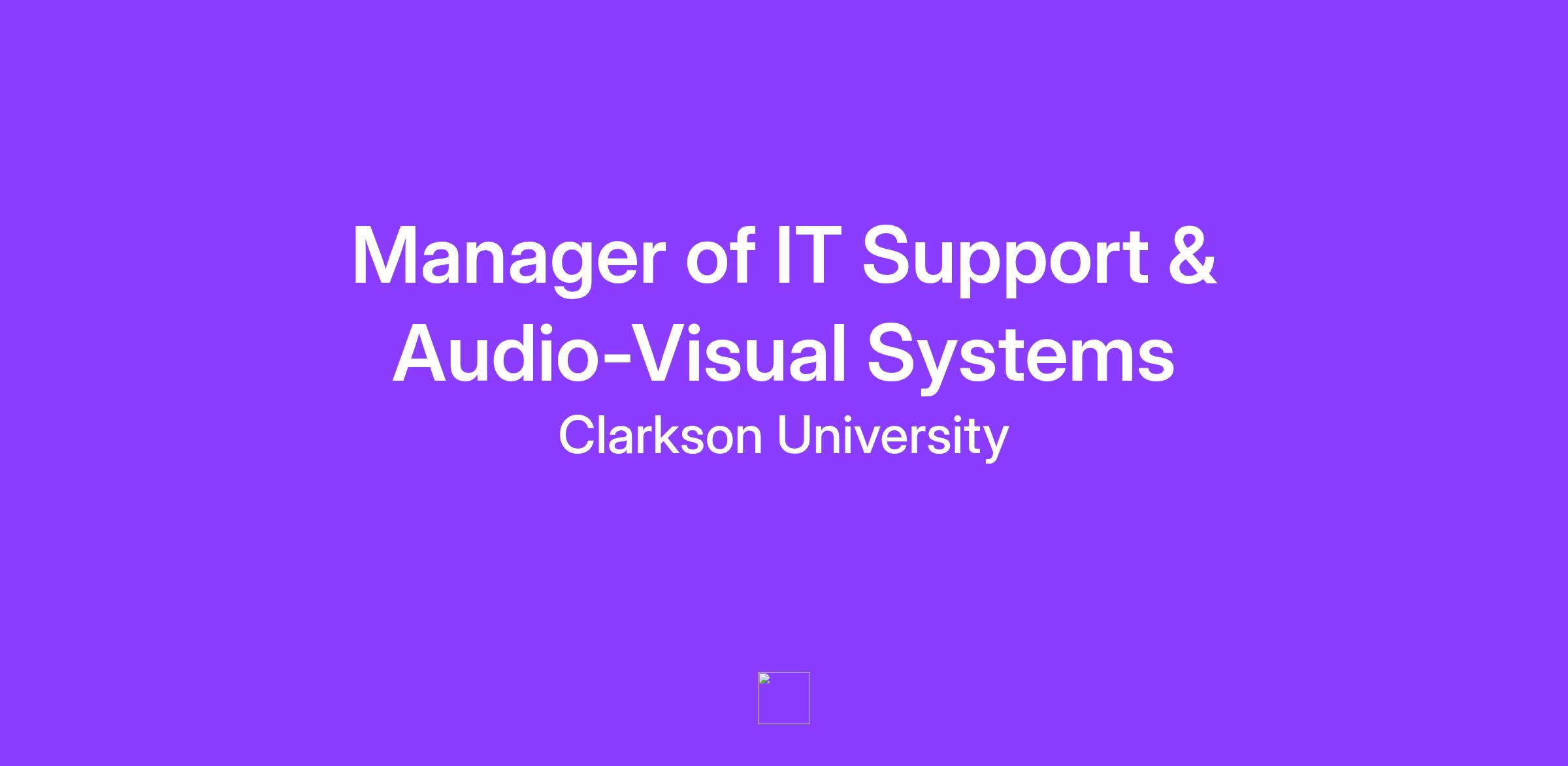 The Manager of IT Support and Audio-Visual Systems ensures that all members of the Clarkson community receive effective, efficient and friendly technical support. They manage a team of IT Support and AV professionals and Student Employees as they deliver services such as Help Desk, Audio Visual, Desktop support, Loaner Pool, Knowledgebase, and Classroom Technology in day to day operations and events. This role contributes to effective communications with the Clarkson community through a range of available media. This role reports to the Director of Academic Technology and Support.