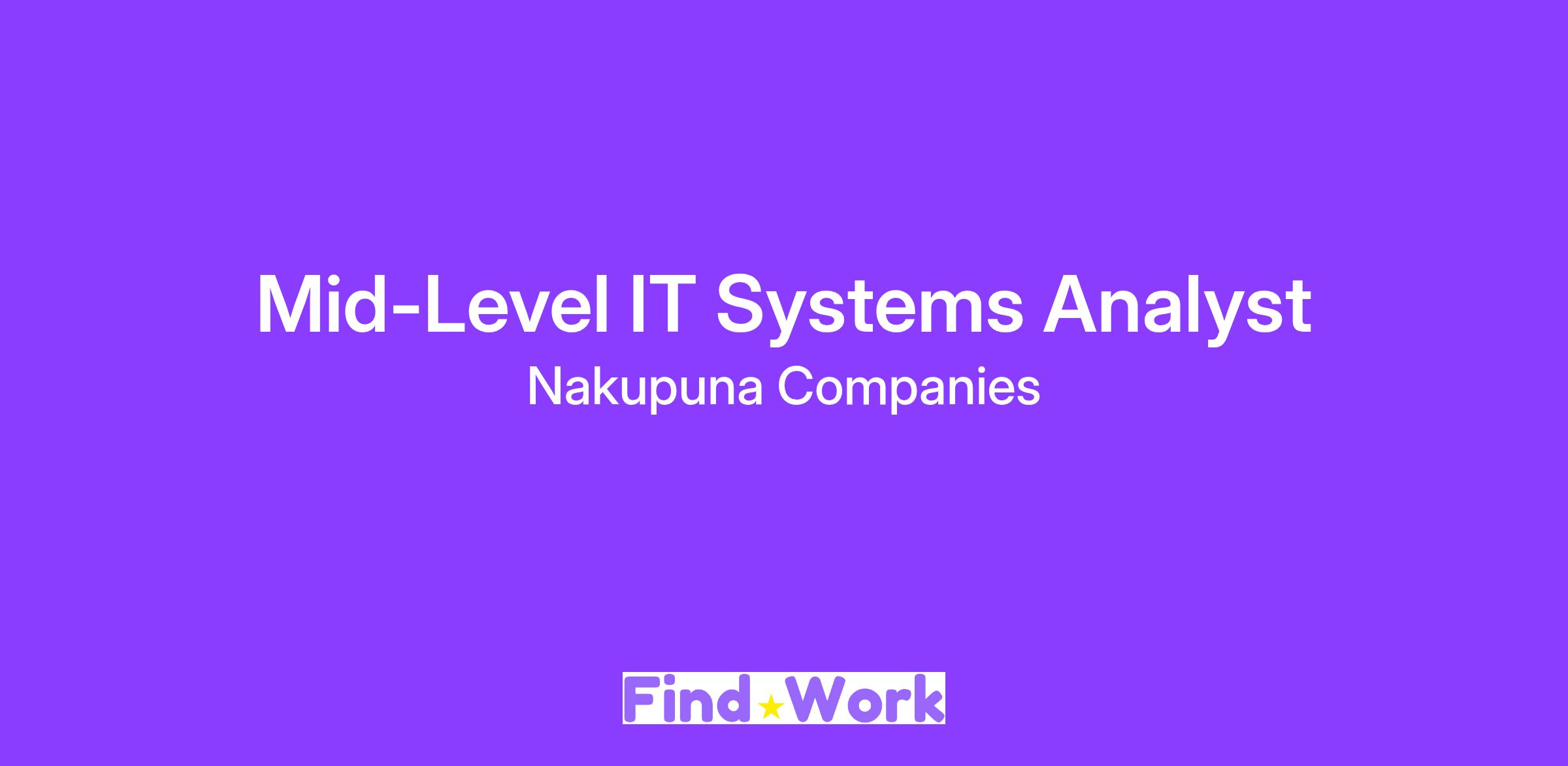 Nakupuna Consulting is seeking a Mid-Level IT Systems Analyst to join our team of talented consultants providing professional services to the senior leadership of NAVSEA 04’s (Industrial Operations). This individual will work with a team in support of operations under NAVSEA 04.