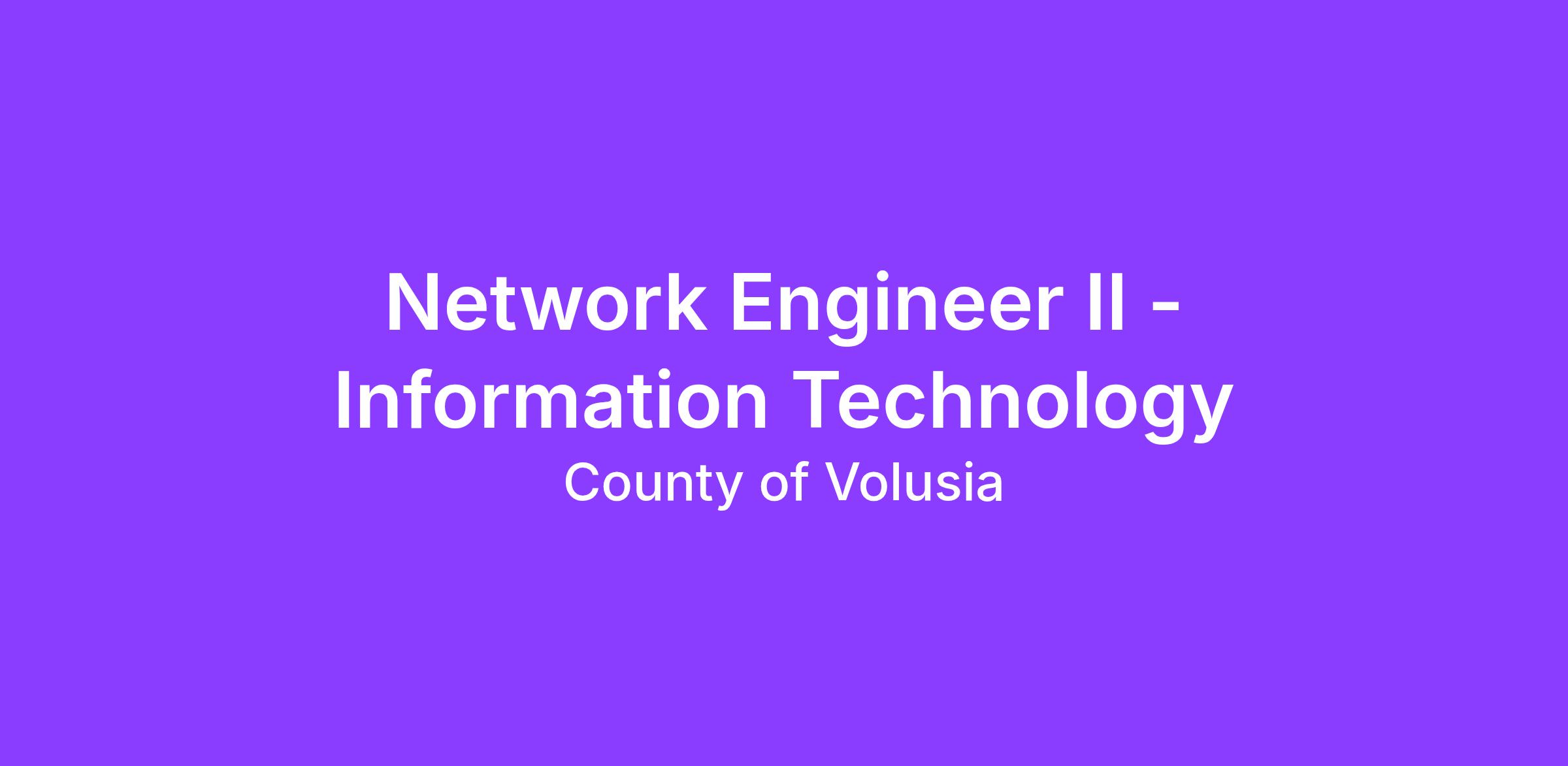 The County of Volusia is seeking a Network Engineer II for the Information Technology division. This position will be located in DeLand Florida, and will be progressively responsible for technical and professional work analyzing, developing, implementing, maintaining, and securing enterprise voice and data networks,  as well as, managing projects and mentoring other Network Engineers.
