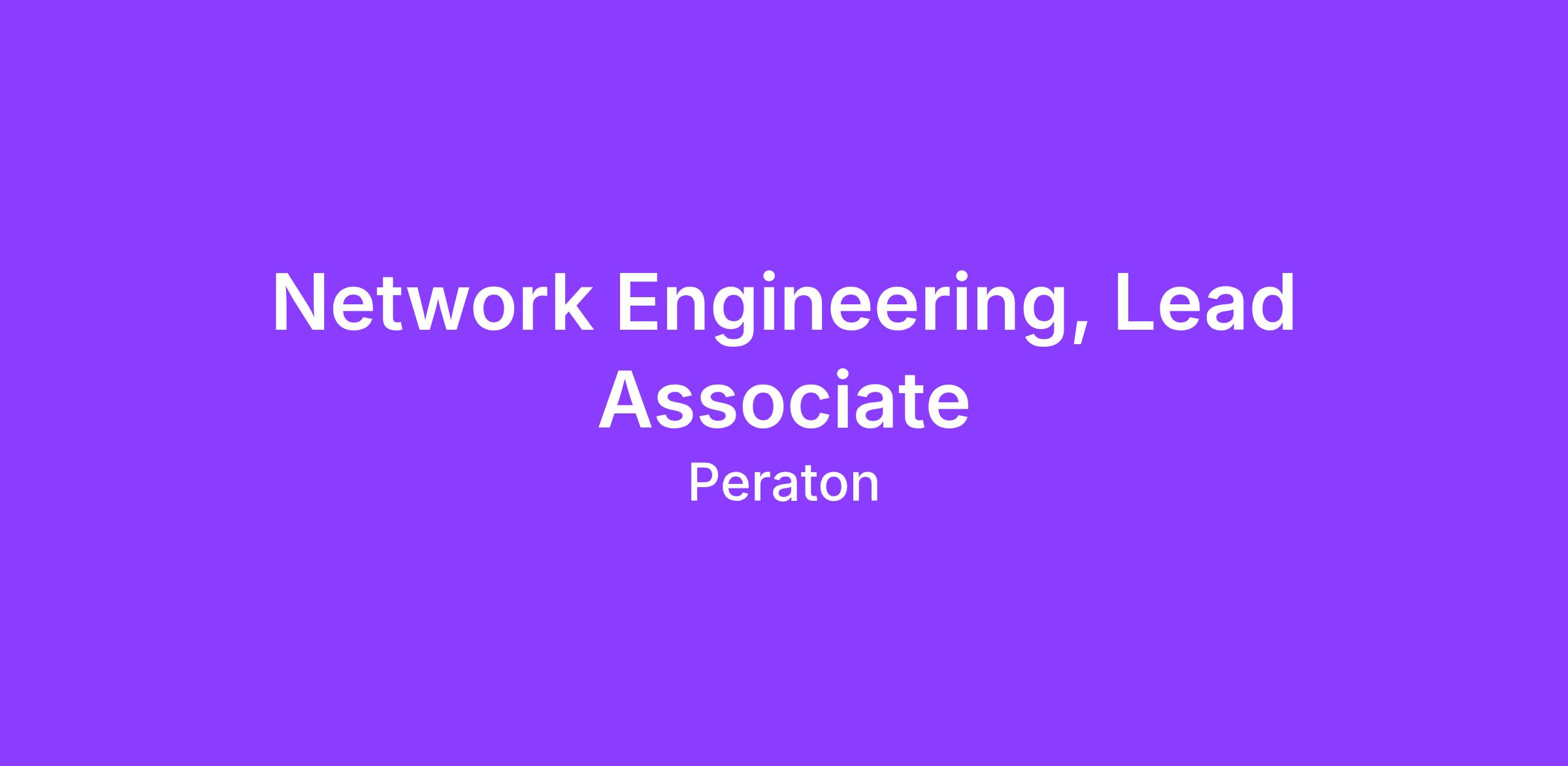 Network Engineering, Lead Associate