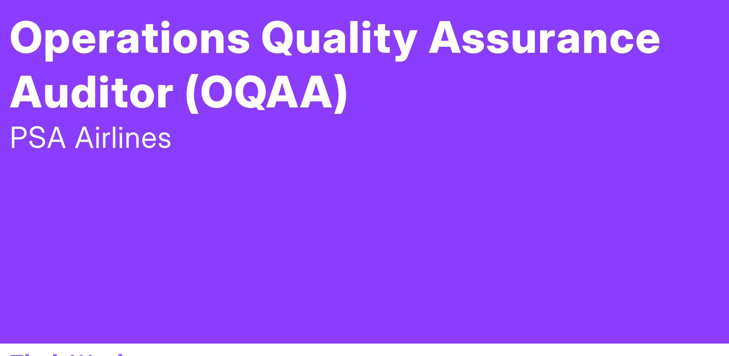 As the Operations Quality Assurance Auditor (QQAA), you will impact PSA Airlines’ business growth by assisting in the management associated with the quality of the Internal Audit and Evaluation Program. In confirming that company processes are in accordance with the standards and procedures established, you will help to identify potential hazards and thereby ensure safer operations.