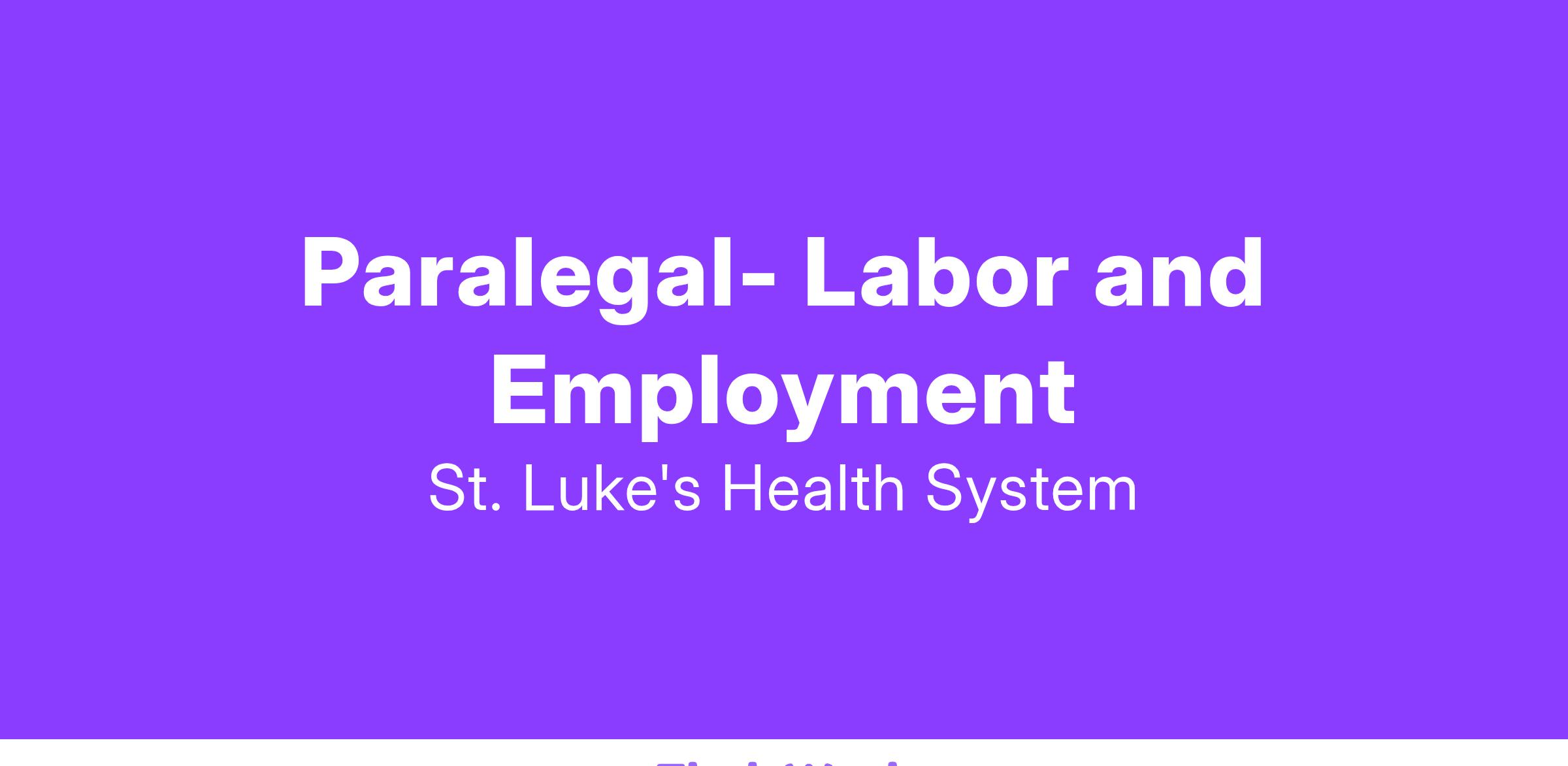 St. Luke’s is an equal opportunity employer and does not discriminate against any person on the basis of race, religion, color, gender, gender identity, sexual orientation, age, national origin, disability, veteran status, or any other status or condition protected by law.