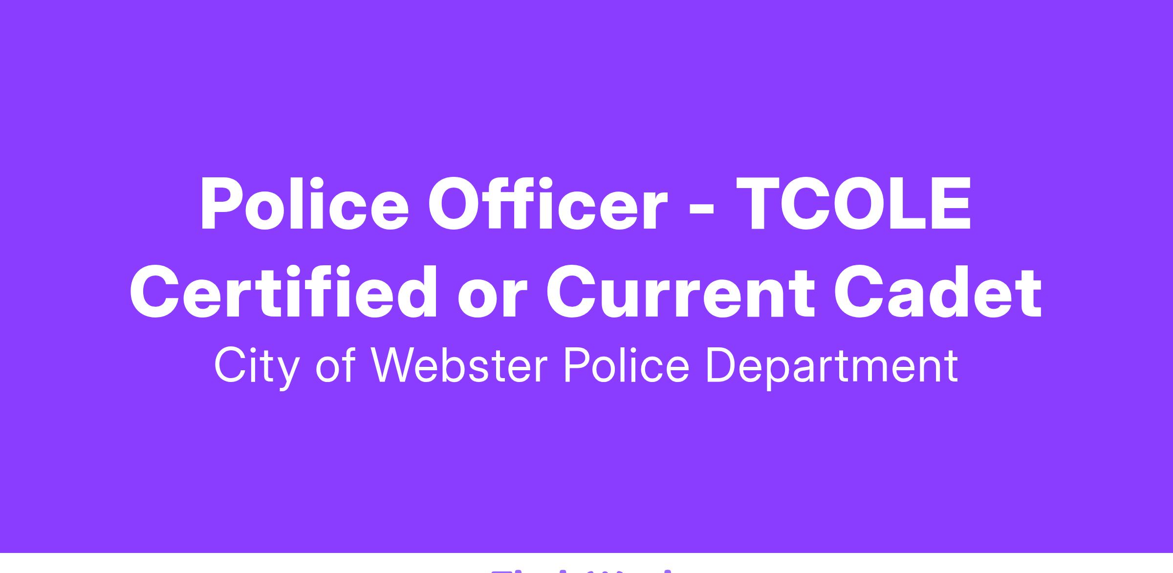 Police Officer - TCOLE Certified or Current Cadet
