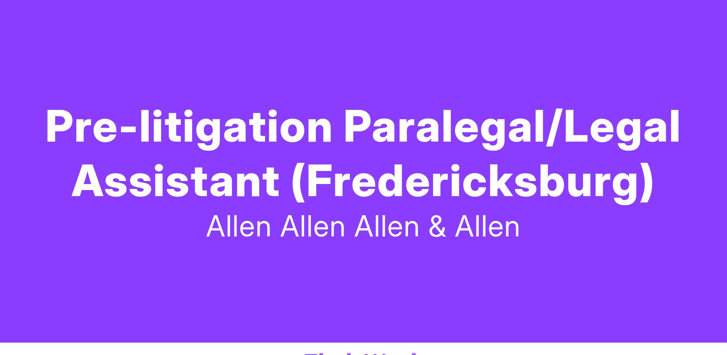 Pre-litigation Paralegal/Legal Assistant (Fredericksburg)