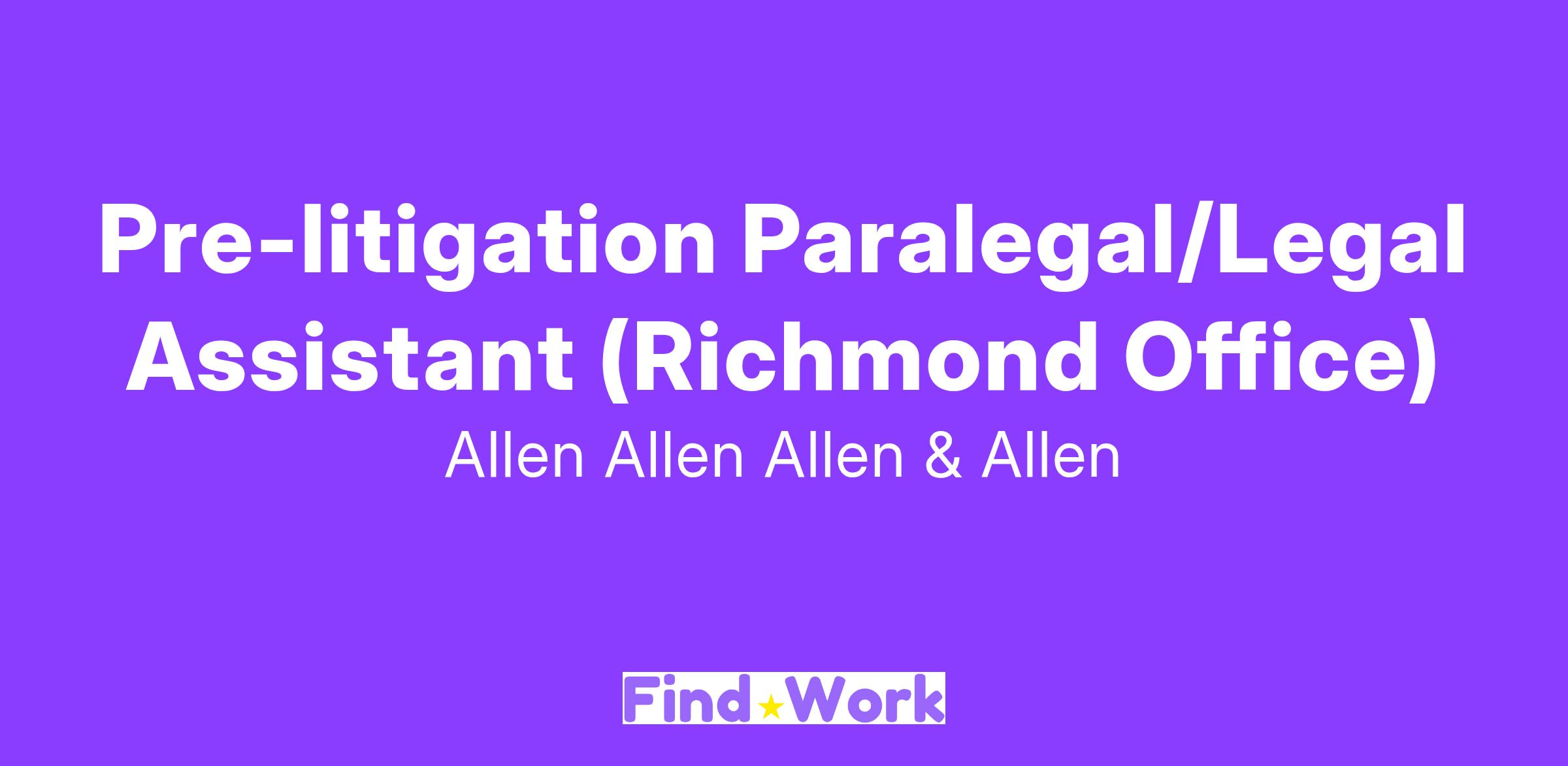 Pre-litigation Paralegal/Legal Assistant (Richmond Office)
