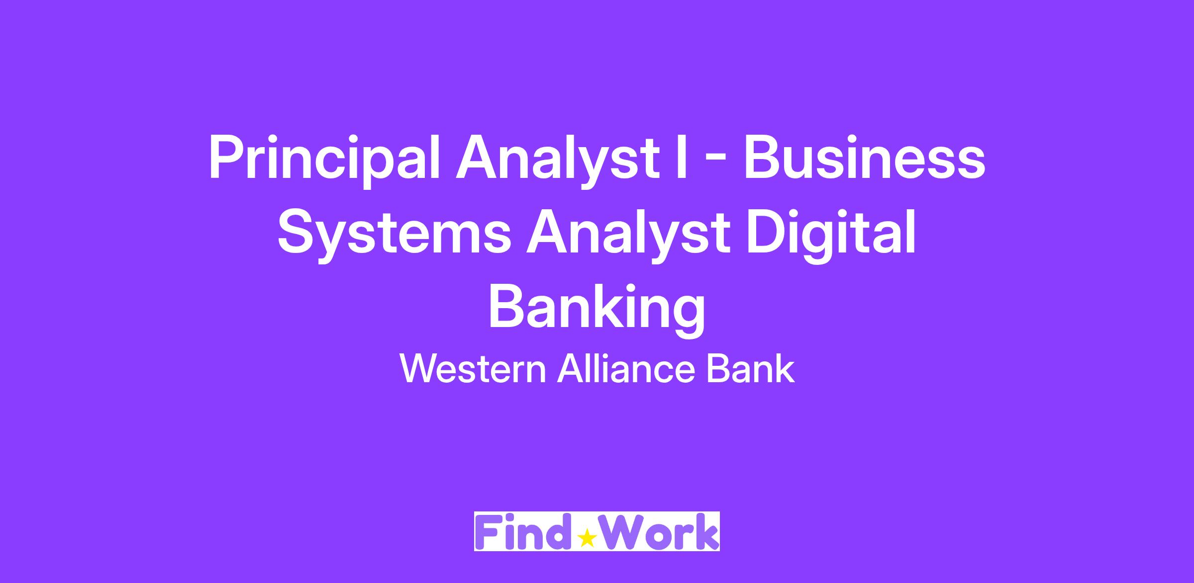 Principal Analyst I - Business Systems Analyst Digital Banking