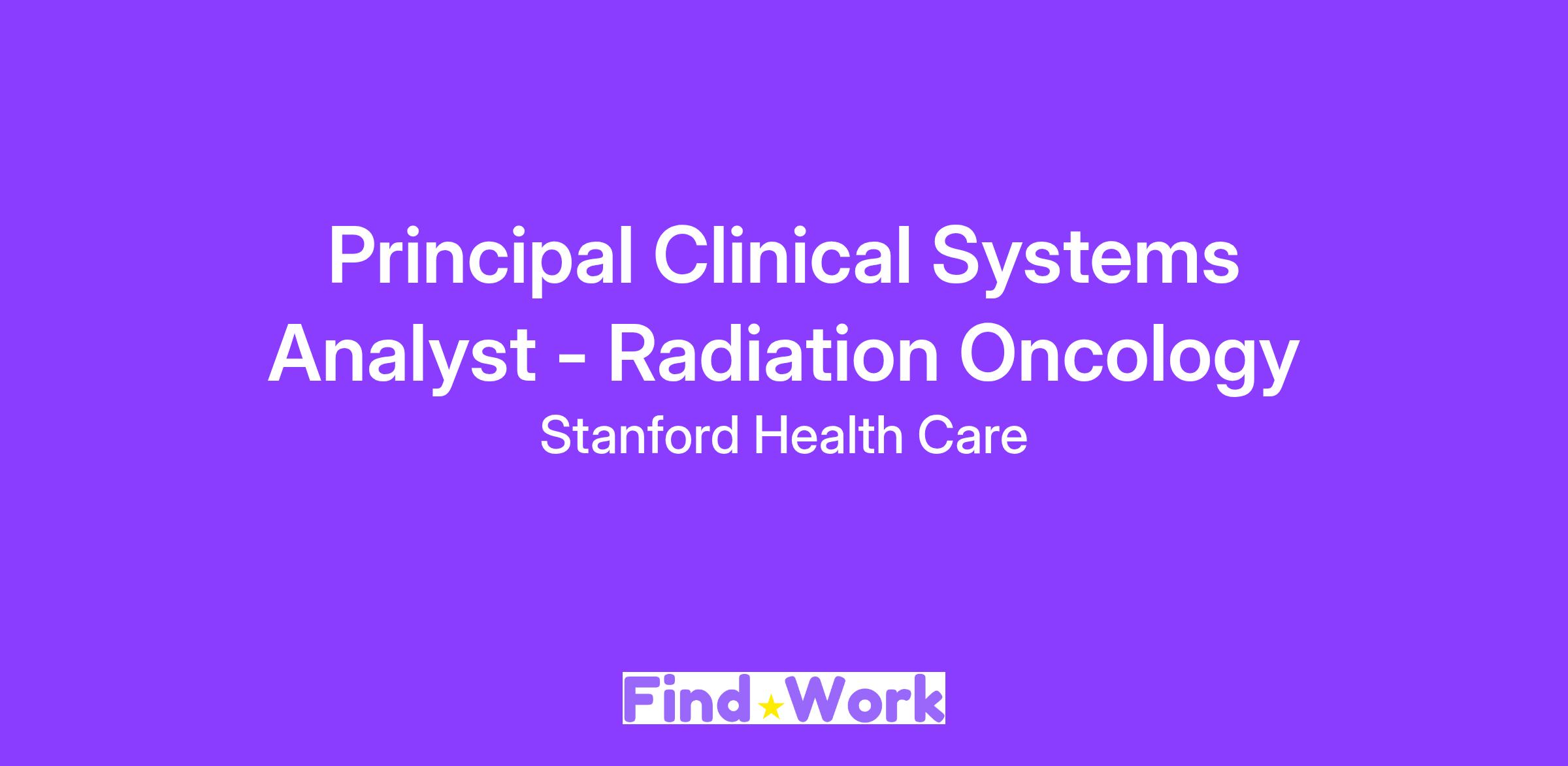 This is a Stanford Health Care job.A Brief OverviewThe Clinical Principal Systems Analyst I supports core functions of the health system's applications to enable cost-effective, high quality, efficient, and safe patient care. This position will implement, administer, and support assigned systems under the minimal guidance of senior members of the team. The position will have in-depth understanding of Epic modules, ancillary systems, and health system operations. This position independently addresses issues and design decisions of high complexity with no direct supervision and delivers clear communication and documentation of complex concepts and issues related to applications, interfaces, data structures, and workflows across the organization.